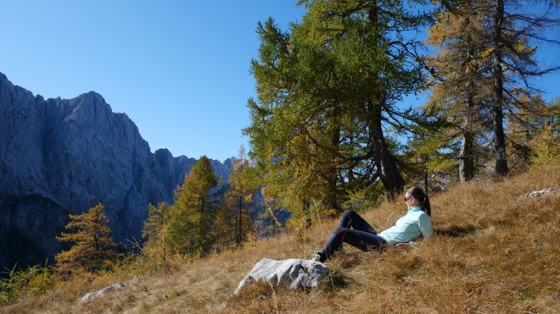 Jesen enostavno obožujem. Jesen prinese tudi čudovite barve in moje rumene macesne, ki so nekaj najlepšega na tem planetu. Že nekaj let jih poizkušam uspešno loviti po Sloveniji in pred leti sem že napisala članek, kje v Sloveniji vas vsako leto čakajo konec oktobra. Enega prvih lovov na macesne pred leti se še posebej spominjam, saj sva jih na žalost takrat zamudila. Tokrat si ne bi mogla želeti lepšega vremena in seveda rumenih macesnov. Slemenova špica (1.911 m) je ena najbolj priljubljenih vrhov za opazovanje rumenih macesnov v drugi polovici oktobra. Na Slemenovo špico se povzpnemo z Vršiča, kjer parkiramo avtomobil. V soboto je na vzhodni strani res pihalo, a ko sva prišla do sedla, kjer se pot zravna, je bilo vreme toplo, sončno, brez oblaka in tudi brez sapice vetra. Pravljični rumeni macesni so se lesketali na modrem nebu. Gneča je bila velika, a sva ujela “luknjo” za gor in za dol, tako da ni bilo prehudo. Seveda pa ob takšnih kulisah narave z lahkoto pozabim tudi na ljudi okrog sebe. Z vrha čudovit pogled na Jalovec, Malo in Veliko Mojstrovko ter na dolino Tamar s Planico. Prekrasen dan in z velikim nasmehom sva se vrnila do izhodišča. Na poti nazaj sva se ustavila na kavici še ob jezeru Jasna in obujala spomine na prečudovit dan.