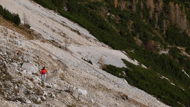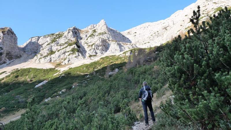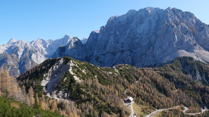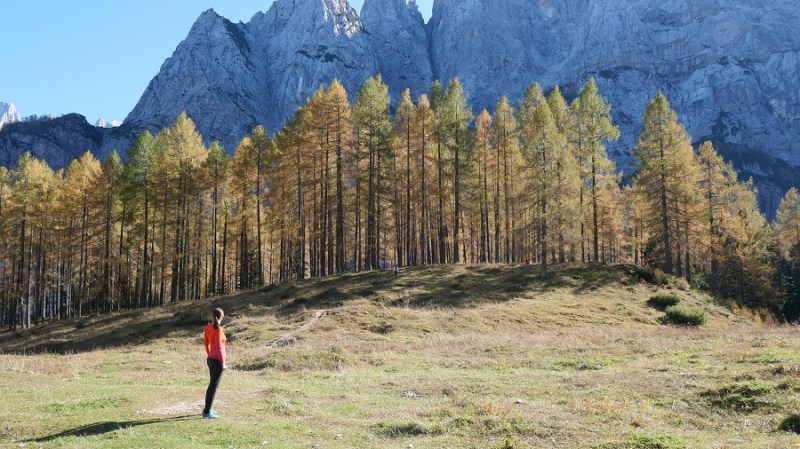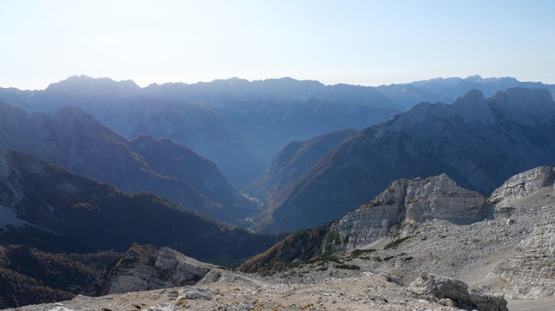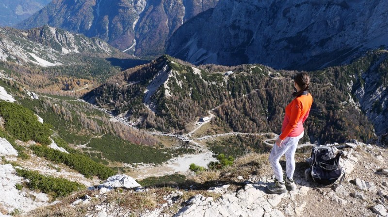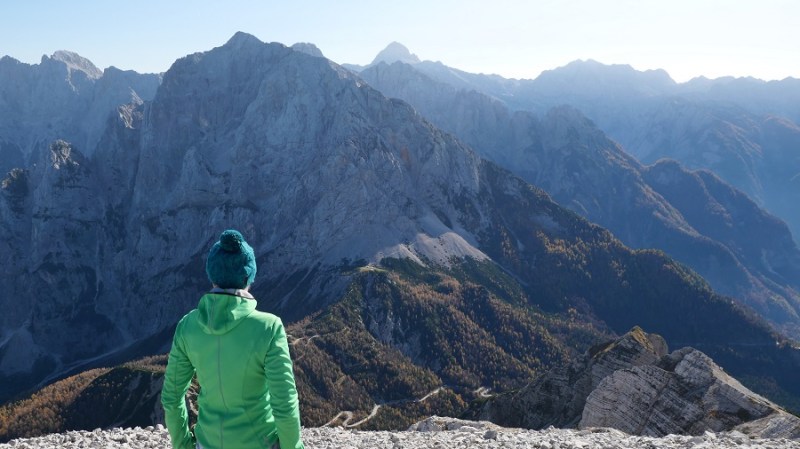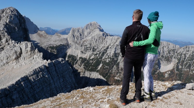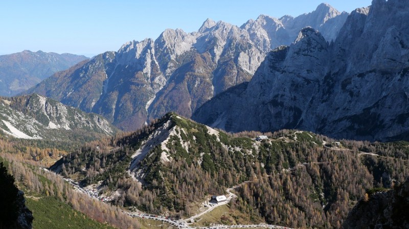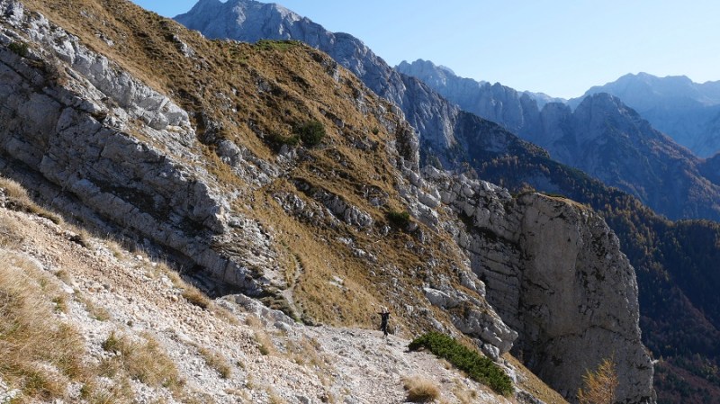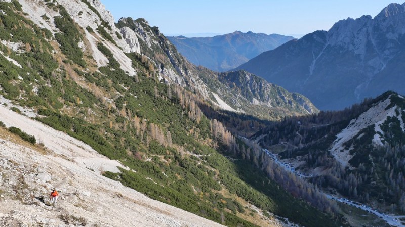 Letos je jesen postregla s čudovitim vremenom, kar sva izkoristila tudi za obisk visokogorja. Prelepa sončna zadnja sobota v oktobru naju je ponesla z Vršiča po južni poti do vrha Male Mojstrovke (2.332 m). Prelaz Vršič je bil odet v zlate iglice jesenskih macesnov, zato je bil cel izlet še veliko lepši. Na Malo Mojstrovko sva se podala oba prvič in izbrala sva seveda lažjo južno pot. Na severni strani je plezalna Hanzova pot za bolj izkušene planince. Parkirala sva na Vršiču. Zaradi inverzije je bilo neverjetno toplo za ta letni čas. Na nebu pa niti enega samega oblaka. Južna pot na Malo Mojstrovko ves čas vodi po odprti legi, zato naju je jutranje sonce zelo lepo grelo. Vso pot vas spremlja čudoviti pogled na Vršič in Julijce, zato je korak precej lažji. Sledi dokaj kratka jeklenica v grapi, ki ni nič zahtevna. Na vrhu grape se nama je odprl pogled na sončno Primorsko. Zavijemo desno in nato samo še dobro uro do vrha po melišču. Na vrhu čudoviti razgledi v vse smeri in prava jesenska pravljica. Hvala Slovenija, hvala jesen za tako čudovit dan v visokogorju.