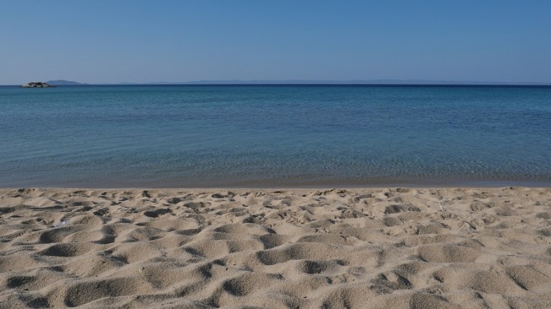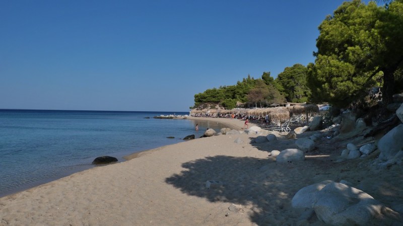 Za zadnji dan počitnikovanja na Sitoniji sva si izbrala bližnjo plažo Kalogria. Moram priznati, da je bila res pravi zadetek v polno. Na plažo sva prišla takoj po zajtrku, torej že okrog osme ure zjutraj. Za naju je to najlepši del dneva in bilo ni še nikjer nikogar. Našla sva svoja dva kvadrata pod borovcem in uživala. Jutranje kopanje, branje, poležavanje in počitek. Morje je bilo res lepo – toplo, mirno in turkizne barve. Končno tudi vetra ni bilo veliko, celo dopoldne celo popolno brezveterje. Kasneje je seveda bilo več obiskovalcev, a še vedno ne prehudo. Dan sva čudovito izkoristila, nato pa se v pozno popoldanskih urah odpeljala v notranjost do hotela Maison. Na cesti je bilo precej gneče, a še vedno veliko manj kot ob prihodu. Hotel sva imela sredi ničesar, a je bil popolnoma nov, lep, soba ogromna, tako da sva bila prezadovoljna.