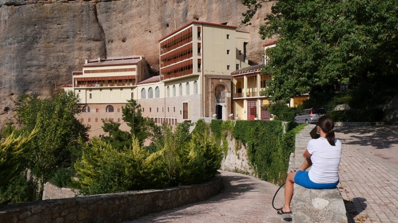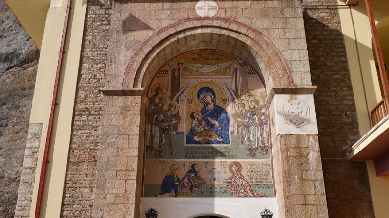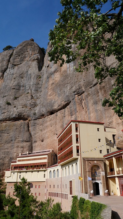 Po ogledu arheološkega mesta sva imela kar precej dolgo vožnjo do mesta Diakopto, kjer sva imela rezervirano tudi nočitev. V načrtu sva imela ogled še enega posebnega samostana, do katerega je vodila precej zavita hribovita cesta. Ni bilo veliko znakov življenja ob poti, zato sva se že kar malce čudila. Vse zapuščene hiše in restavracije niso obetale veliko. A ko sva prispela do čudovitega samostana Mega Spilao, sva samo obnemela. Samostan se nahaja v veliki jami ob zelo visoki pečini in je enostavno prečudovit. V bližini ni bilo niti enega samega turista, kar je pomenilo pristno doživetje. Samostan “Velika jama” je grški pravoslavni samostan in velja po tradiciji za enega najstarejših v Grčiji, Leta 362 sta ga ustanovila solunska brata Symeon in Theodore. Jama naj bi bila znana že v antiki, saj geograf Pausanias poroča, da so hčere Proetusa tam v norosti našle zatočišče. Krščanski puščavniki so v prvih krščanskih stoletjih zasedli jamo. Njegova srednjeveška zgodovina pod bizantinsko in latinsko vladavino je nejasna. Samostan se je uveljavil šele okoli leta 1354, ko je služil kot rezidenca pravoslavnega metropolita Patrasa. Kompleks je doživel skozi zgodovino številna uničenja in ponovne obnovitve. Nazadnje ga je uničila leta 1943 nemška divizija in usmrtila 22 menihov. Samostan je bil po vojni obnovljen in zdaj obsega osemnadstropni kompleks, postavljen na 120 metrov visoki steni.