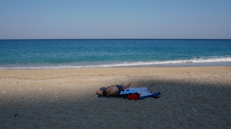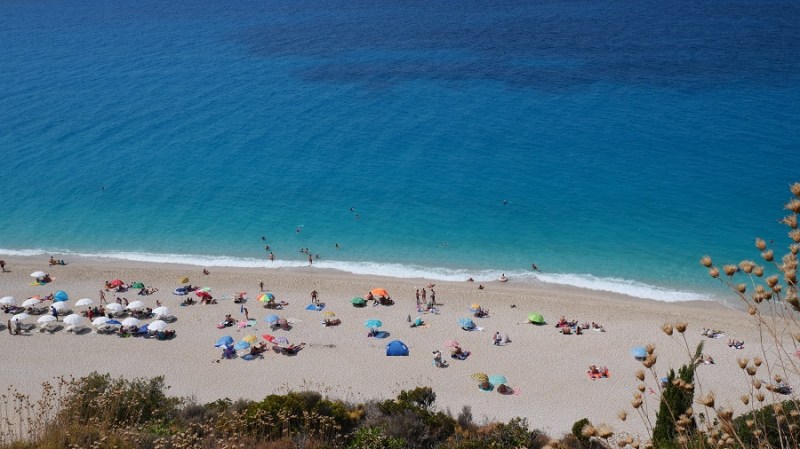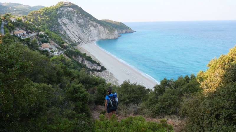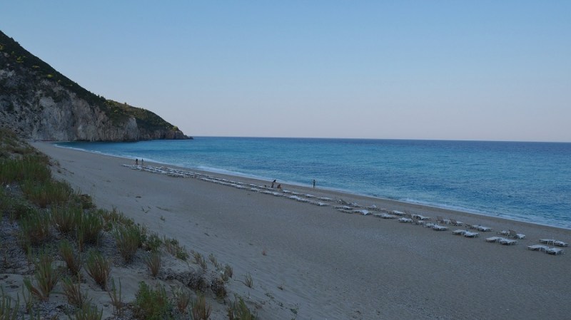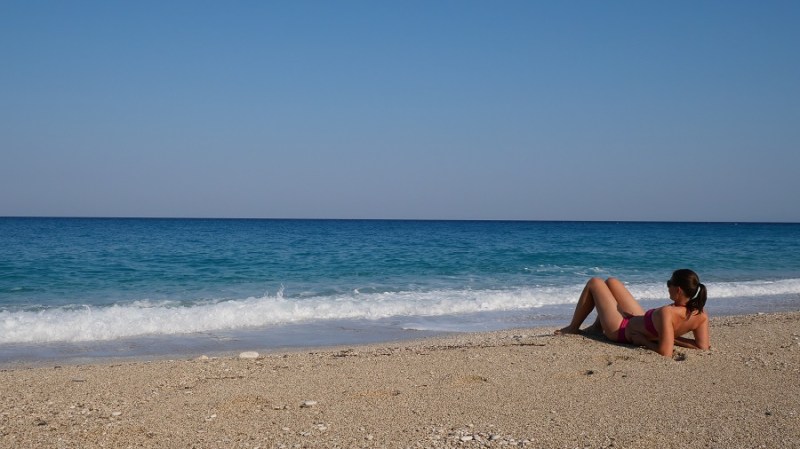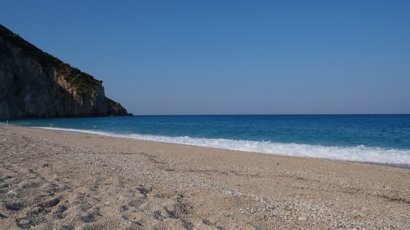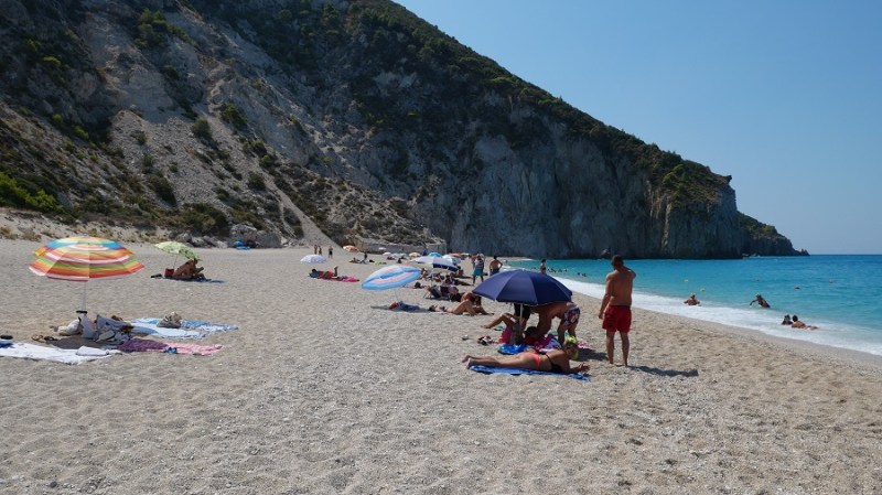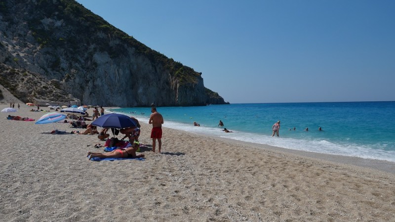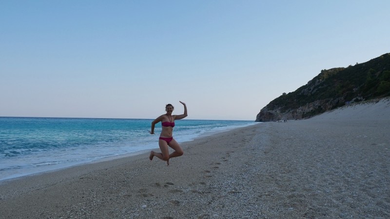 Napakirajte si opremo, ne pozabite na senčnik z UV zaščito, dovolj pitne vode ter seveda tudi kaj za pod zob in se podajte na najlepšo plažo na najinem potovanju. 20 minut peš iz vasi Agios Nikitas, kjer parkirate ob glavni cesti svoj avto. Če ne boste zgodnji, boste parkirali nekaj kilometrov stran, ker je toliko obiskovalcev. Midva sva šla lahko kar peš iz najinega apartmaja, ker seveda zelo rada hodiva. Najprej gor in ko boste prvič zagledali to plažo, boste vedeli, zakaj hodite v hrib. Čudovito. Nato pa strmo dol in še nekaj sto metrov po peščeni plaži. Midva sva vedno parkirala bolj na koncu, a sva potem ugotovila, da tam pristajajo čolni. A vseeno je bilo tam manj ljudi kot na začetku, ker so v večini zelo utrujeni od hoje. Na plaži je nekaj ležalnikov in en mini kafič od letos dalje, sicer pa nič. Morje je prečudovito – toplo, lepo, čisto in turkizne barve. Uživala sva dve uri v samoti, potem pa je prišlo nekaj obiskovalcev, a vseeno zelo v redu. Kopanje, sončenje, branje, uživancija.