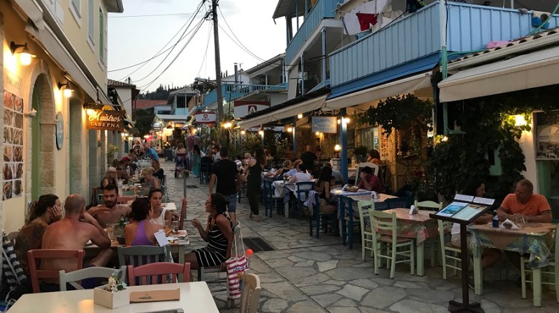 Na plaži sva zdržala do dveh popoldan, nato pa sva se odpravila peš čez hrib nazaj po isti poti do vasi Agios Nikitas na kosilo. Tudi zvečer je vasica prav simpatična z dobrimi restavracijami, lokali in tudi utripom. Priporočam.