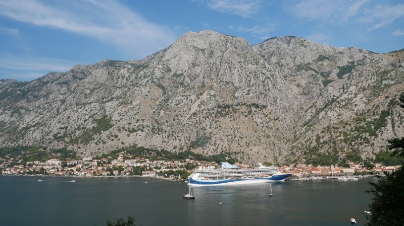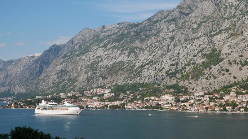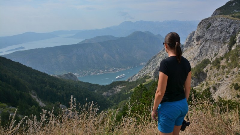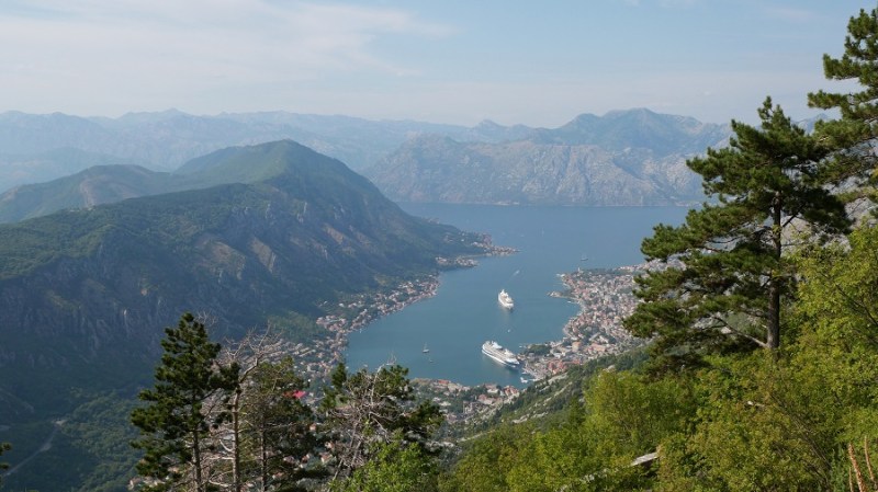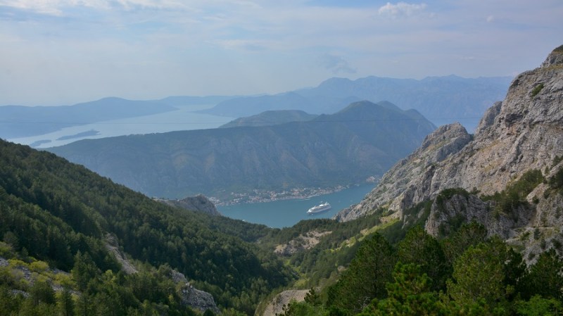 Domači prigrizek nama je dobro del, a kmalu sva nadaljevala z vožnjo do Kotorja. Ovinkasta cesta polna pločevine je nudila veliko razgledov na prečudoviti zaliv Boke Kotorske. Dolgo nisem videla tako lepega razgleda na zaliv. Še sreča, da smo mi vozili v koloni navzdol za avtobusom, ker so se morali avtomobili, ki so vozili navzgor nam umikati. Grozljivo je bilo videti avtomobile v visokih stranskih bankinah, ki so jih lastniki hudo poškodovali. V Kotorju se nisva ustavljala, ker je bila neznosna gneča obiskovalcev z dveh ogromnih križark.