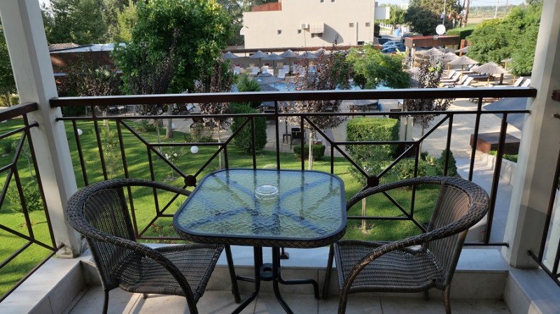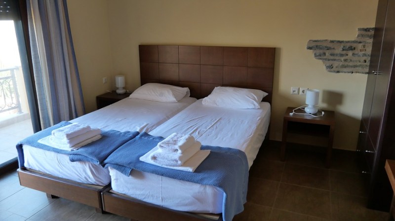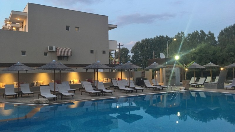 Naslednjo noč na polotoku Halkidiki sva prespala v čudovitem zasebnem hotelu med stoletnim nasadom oljk. Več apartmajev v dveh objektih, a še vedno prijetno majhno. Imela sva lep apartma z veliko teraso in manjšo kopalnico. Bilo je zelo mirno in prijetno bivanje. Zajtrk je bil zelo okusen. Imajo tudi velik in lep bazen za kopanje.