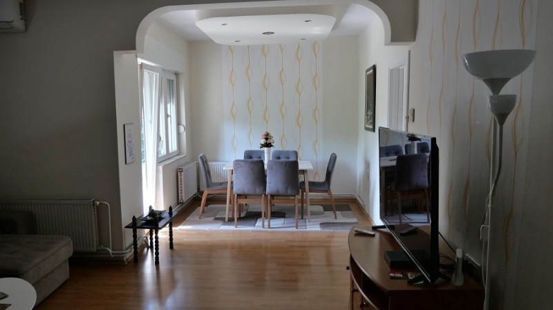 Prvo noč sva sprespala v hudo prevelikem zasebnem apartmaju v Skopju. Skoraj sem prepričana, da domači živijo v tem stanovanju, potem pa poleti oddajajo, ker jim prinaša lep zaslužek. Stanovanje je bilo trisobno, ogromno, zelo lepo, popolnoma novo opremljeno, imela sva tudi parkirišče na njihovem zaprtem dvorišču. Do centra sva imela 20 minut hoje, a nama je to zelo ustrezalo po celodnevni vožnji. Spala sva super, ker je stranovanje v hiši stran od vrveža v lepi in zelo mirni soseski.