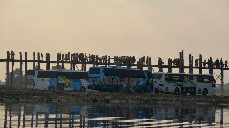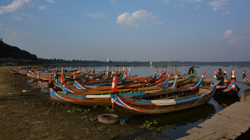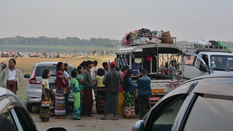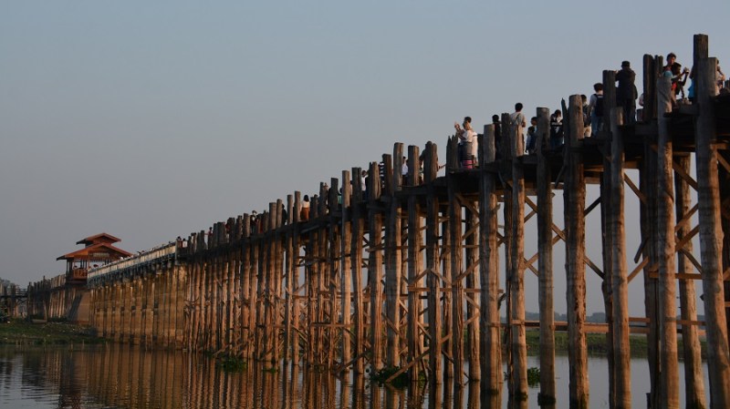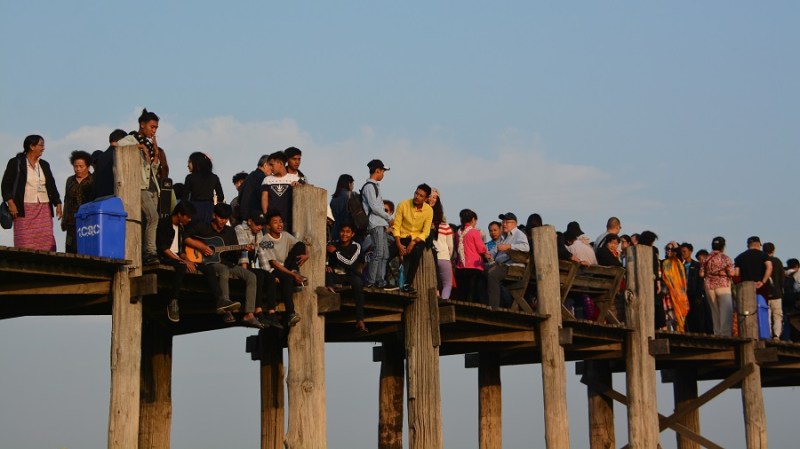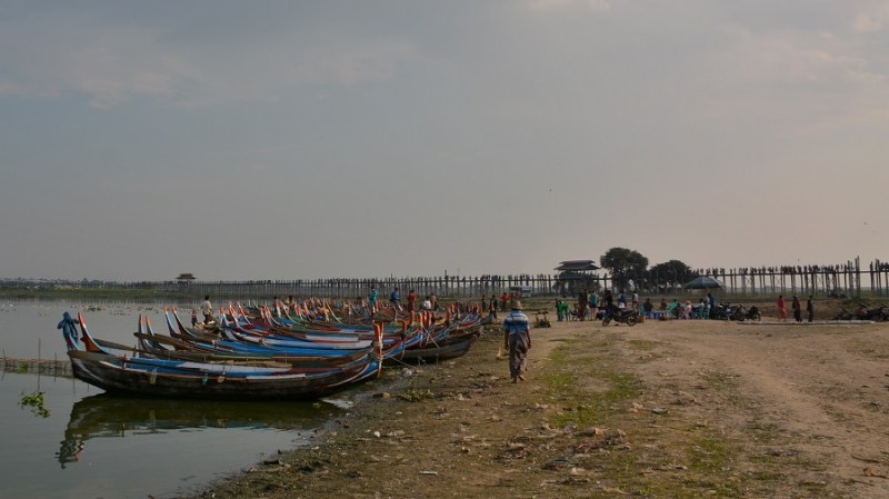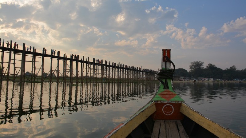 V Mandalayu nikakor ne odlašajte z obiskom mosta U-bein v Amarapuri, tudi če ste v Mandalayu več noči. Vreme vam jo lahko pošteno zagode, zato se odpravite tja čimprej, da si zagotovite še kakšno možnost. Midva sva se takoj po kosilu odpravila s taksijem v Amarapuro na ogled mostu. Najprej se nama je zdel taksi grozljivo drag, a sva nato ugotovila, da naju bo šofer lepo počakal do konca ogleda in velja cena prevoza tudi za nazaj. No, to je pa veliko lepše. Amarapura je precej oddaljena od Mandalaya, zato nikar ne poskušajte do tja kolesariti. Mogoče si lahko izposodite motor, a je cesta precej polna in vozijo tudi kar divje. Midva sva bila prvi dan v Myanmaru in sva raje šla s taksijem. Je bolj varno, sploh ko se vračaš v trdi temi. Vse se dogaja na zahodnem bregu velikega jezera in tja vas voznik tudi pripelje. Uf, šok. Cirkus – same trgovine, stojnice s hrano in veliko število obiskovalcev. In malo več infrastrukture sem si pa res predstavljala za takšno znamenitost.
