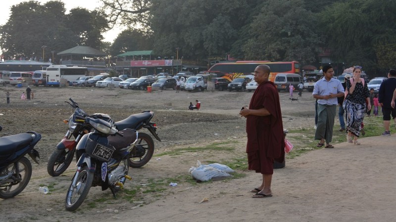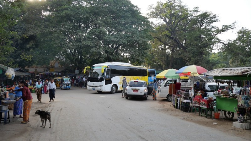 V Bangkoku sva na hitro pojedla zajtrk v hotelu, nato pa naju je taksi še v zgodnjih jutranjih urah odpeljal na domače letališče Don Mueang, ki je na severu mesta. Od tam sva ob 11h z Air Asia poletela v Mandalay. Za Myanmar slovenski državaljani potrebujemo vizo in jo moramo nujno predhodno urediti na njihovi uradni spletni strani ter si potem natisniti potrdilo za vstop v državo. Nujno! Brez papirja ne bo šlo in vas tudi ne bodo vkrcali na letalo za Myanmar. Seveda potem ob vstopu v državo ni nobenih težav in hitro dobite 30-dnevno turistično vizo. Na izhodu sva se hitro znašla in si uredila skupni prevoz do najinega hotela za izjemno nizko ceno. Letališče je precej oddaljeno od centra in smo se vozili (sicer počasi) skoraj eno uro. Hotel sva imela odličen, dobila sva na vrhu najlepšo sobo s pogledom na mesto in soba je bila vrhunska. Ker je bil že čas kosila, sva si privščila odličen nasi goreng kar v njihovi restavraciji. Priporočam!