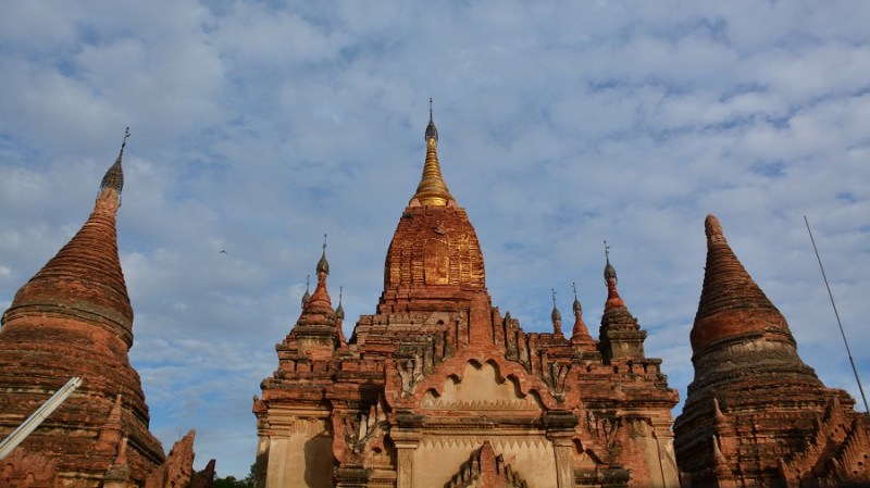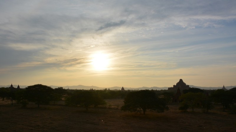 Ko sva prispela v hotel, sva si hitro naročila kosilo kar v njihovi restavraciji, nato pa si hitro izposodila dva električna skuterja ter se odpeljala na ogled prvih pagod in templjev. Želela sva izkoristiti sončne ure, zato sva se kar vozila sem ter tja in uživala v prvih pogledih in razsežnosti Bagana. Ker je vse stopanje na pagode prepovedano, sva na enem od hribčkov počakala tudi na sončni zahod. Delno oblačno vreme ni pričaralo prave rdeče svetlobe, a je bilo kljub temu zelo lepo in mistično.