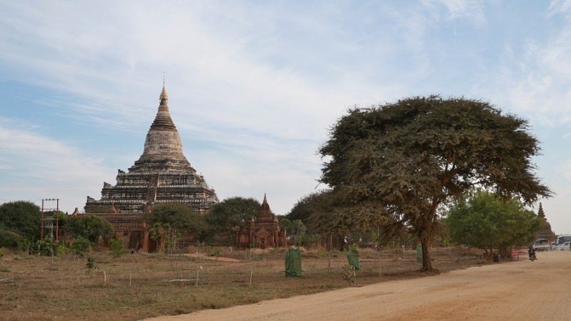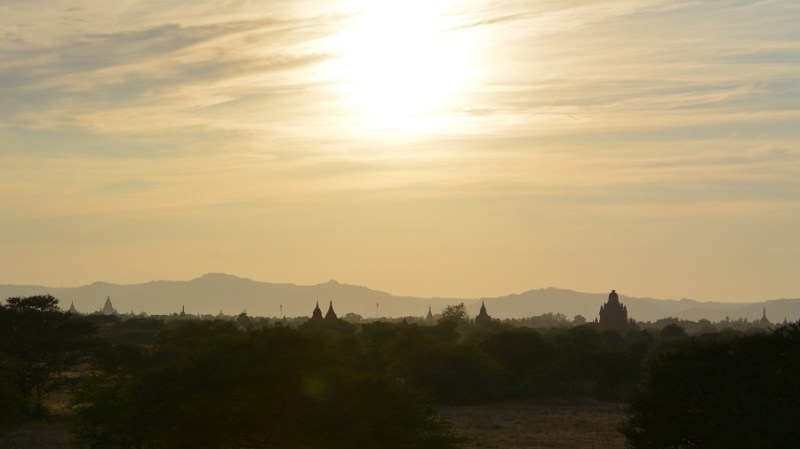 Po treh dneh v Mandalayu je bil čas za premik. Večinoma se popotniki podajo iz Mandalaya v Bagan s turističnimi ladjami po reki Irawadi. Ta vožnja traja cel dan in je ob lepem vremenu dokaj zanimiva. Midva sva se že doma odločila drugače – da greva v Bagan z avtomobilom in se vmes ustavimo še na gori Popa, kjer je zelo lep samostan Taung Kalat postavljen visoko na skali. Najlepši razgled na samostan je z Popa Mountain Resorta, kjer sva si privoščila kavo in čaj. V Bagan smo prispeli okrog dveh popoldan. Namestila sva se v hotel v New Baganu, nato pa hitro na električni skuter in malo naokoli med templje. Prvi vtis vožnje med stoterimi starodavnimi templji je bil naravnost čudovit. Z množico ostalih turistov sva pričakala tudi sončni zahod nad Baganom.