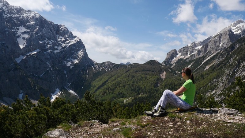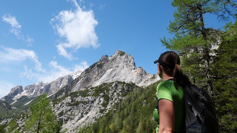 V tem bolj deževnem tednu sva čudovito izkoristila nekaj sončnih in toplih ur v četrtek dopoldne. Sicer je bila bolj slaba napoved, a sva vseeno poizkusila. In se je več kot izplačalo. Za vzpon na Visoki Mavrinc (1.562 m) parkirate pri Koči na Gozdu, ki se nahaja ob cesti na Vršič s kranjskogorske smeri. Parkirišče je bilo popolnoma prazno in tudi vreme je bilo več kot lepo. Zelo toplo in skoraj prevroče za hojo v hrib.