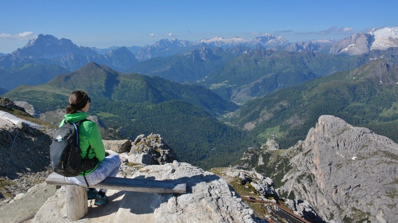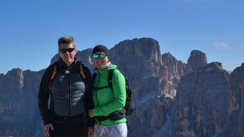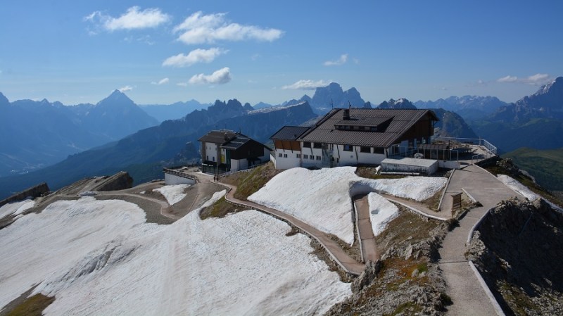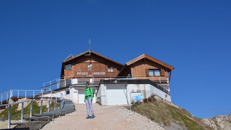 Tokrat sva zgodnje jutro preživela na gori Lagazuo Piccolo (2.778 m), od koder je zagotovo najlepši pogled na Dolomite. Dan poprej sva se pripeljala do vrha prelaza Falzarego, kjer je parkirišče in lepa koča. Pozanimala sva se glede voznega reda gondole Lagazuo, ki vas v nekaj minutah pripelje na čudovito razgledno ploščad. Naslednje jutro sva bila že s prvo gondolo na vrhu in preprosto uživala v čudovitih razgledih. Ker sva imela v planu še daljšo hribovsko turo, sva se na vrhu le počasi sprehodila do vrha gore Lagazuo Piccolo (2.778 m). Pot je kratka in zelo lepo urejena, zato je primerna za prav vsakega obiskovalca. Lepo vidimo Marmolado in njen ledenik, pred nosom na zahodno stran pa imamo vse tudi vse tri Tofane – Tofana di Rozes, Tofana di Mezzo in Tofana di Dentro. V daljavi vidimo tudi špičasti Sorapiss in zelo majhne Cinque Torri. Lagazuo Piccolo ima tudi zgodovinski vidik, saj je na območju gore med 1. svetovno vojno potekala huda bitka med Italijani in Avstro-Ogrsko vojsko, ki je goro popolnoma preluknjala s številnimi podzemnimi rovi. Po rovih poteka zanimiva planinska pot, ki pripelje na vrh. Žal je bila tokrat zaprta, zato sva se midva z gore odpeljala tudi z gondolo. Sicer lahko cel dan preživite seveda bodisi z vzponom na goro, ali pa le spustom nazaj do izhodišča. Čudovito “dobro jutro”!
