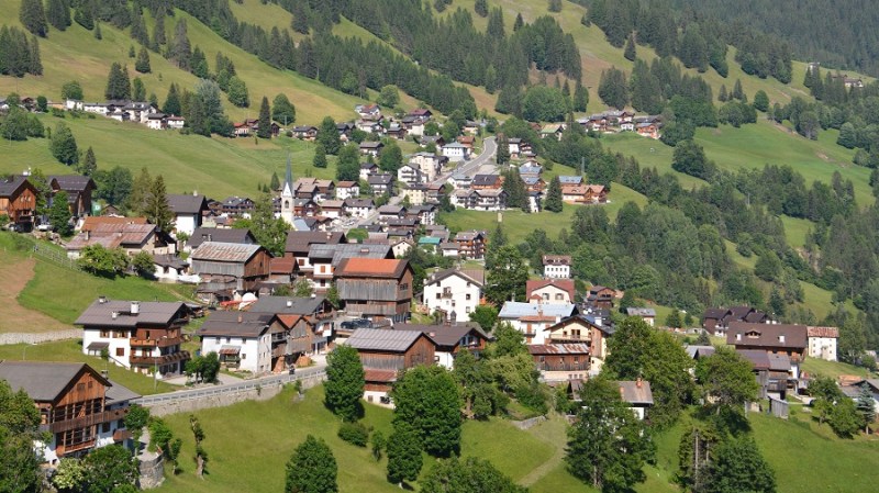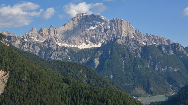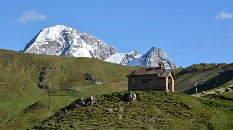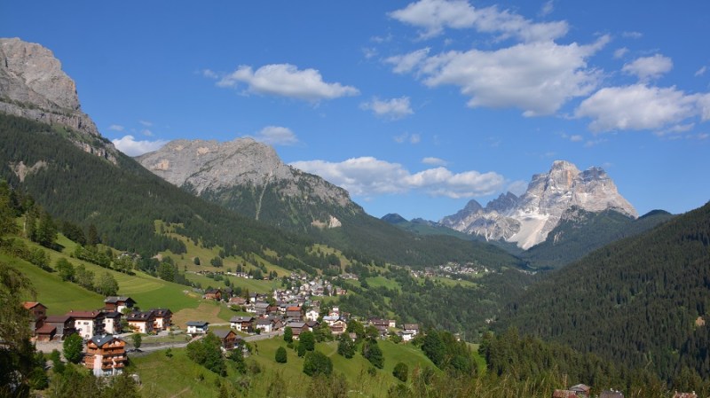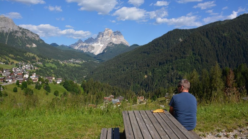 Z vožnjo sva nadaljevala proti drugemu prelazu po seveda zelo ovinskasti cesti. Ustavila sva se ob cesti v idilični vasici Colle Santa Lucia in si privoščila kratek počitek z izjemnim pogledom na goro Pelmo in slovito Civetto.
