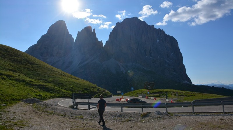Dan je bil dolg tudi za najin tempo, saj sva najprej zjutraj obiskala z gondolo goro Lagazuoi Piccolo s prelaza Falzarego, nato naredila čisto pravo čudovito hribovsko turo okrog jezera Croda, za popoldanski del dneva pa sva še prevozila dva najlepša prelaza v Dolomitih in se odpeljala do Val Gardene, kjer sva tudi prenočila. Čudovita ovinskasta vožnja po prelazih, mimo idiličnih vasic in z neverjetnimi razgledi na vse strani neba. Raj na Zemlji za motoriste, kolesarje in avtomobiliste. Žal pa so tokrat ceste in vasice samevale!