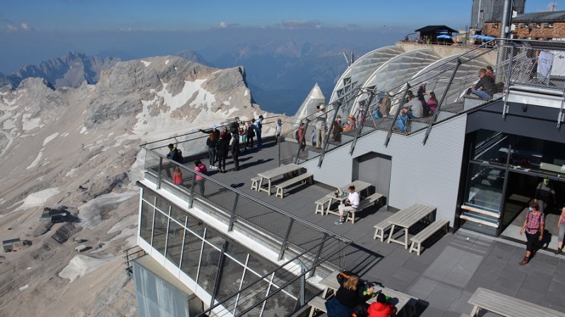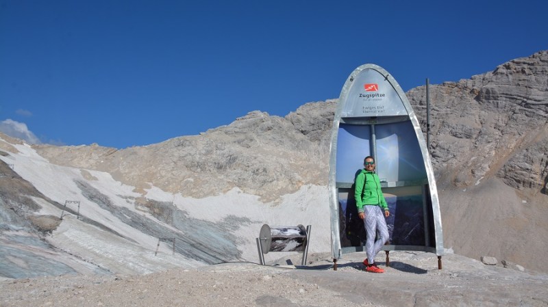 Po odličnem zajtrku pri Gerti sva se odpeljala do eno uro oddaljenega parkirišča pri jezeru Eibsee pod veličastno najvišjo goro v Nemčiji – Zugspitze (2.962 m). Na Zugspitze se seveda lahko povzpnete peš, a gre za zelo zahteven 5-urni vzpon. Midva sva se odločila za turistično varianto z gondolo. V dnevno karto je vključen tudi vzpon z vlakom iz Garmish-Partenkinchna. Čeprav sva bila zgodnja, je bilo parkirišče ob jezeru Eibsee že skoraj polno. Z gondolo sva se dvignila na vrh in občudovala lep 360-stopinjski razgled. Na vrhu je lepa razgledna ploščad, restavracija in planinska koča. Z gondolo sva se spustila do manjšega ledenika in se sprehodila naokoli. Zoper nazaj na vrh z gondolo ter z drugo gondolo nazaj do izhodišča. Zelo lepo!
