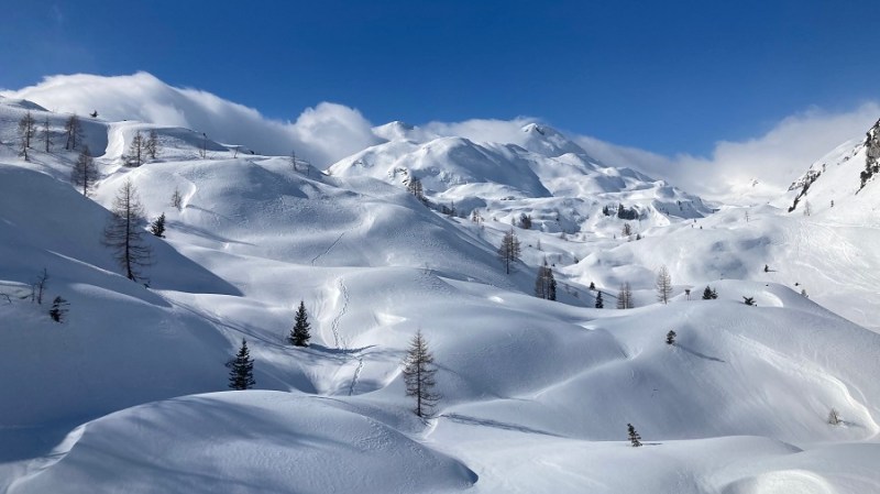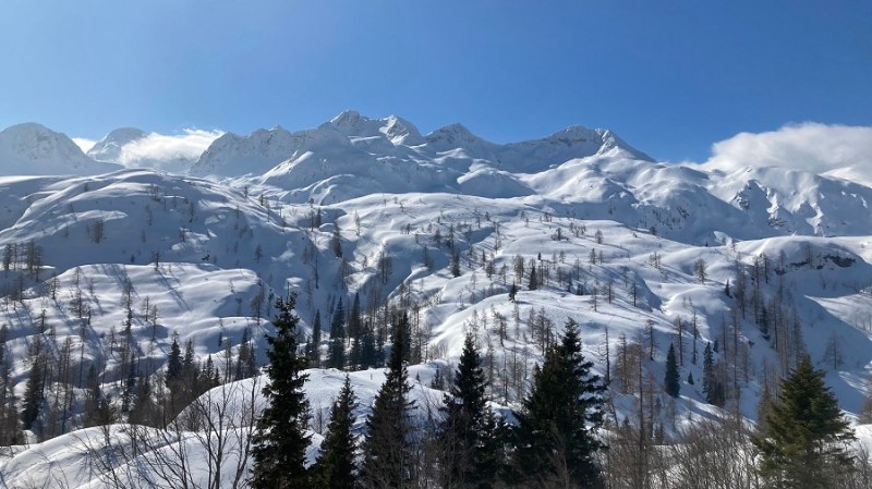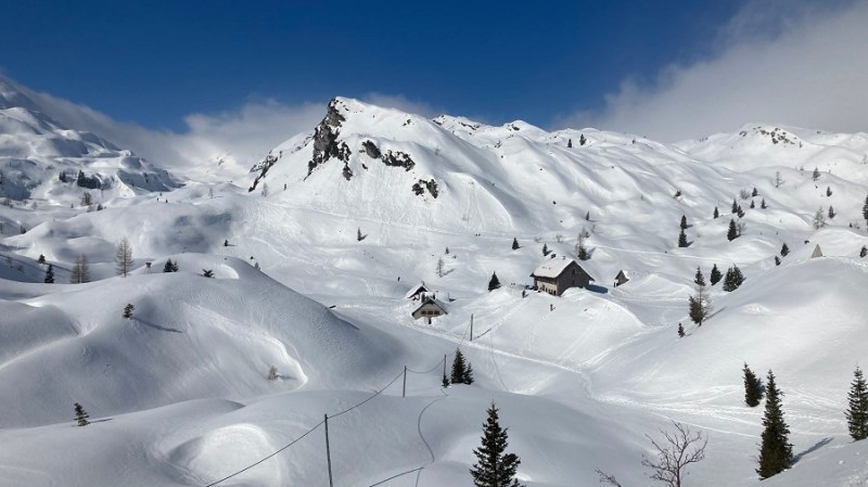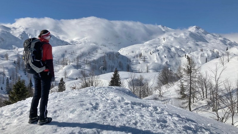 Končno so odprli regije, da sva se lahko podala v osrčje Julijskih Alp. Že pred osmo zjutraj sva parkirala na slabo spluženem parkirišču pri koči pri Savici in se odpravila proti domu na Komni, kjer sva že bila letos jeseni. Ne bom vas zavajala – hodili smo po vijugasti poti praktično skoraj v koloni, a vsak je imel vseeno dovolj prostora za vsaj malce miru. Priznam, da v takšnih okoliščinah raje malo počakam in grem zadnja. Razmere so bile snežne, zato sva si hitro nadela dereze. Do doma pri Komni ni prav veliko razgleda, razen tu in tam pogled na Bohinjsko jezero. A ko ste po dveh urah in pol na vrhu, je vse poplačano. Razgled za milijon dolarjev na vse strani neba. Tokrat sva nadaljevala še do koče pod Bogatinom (1.513 m), kjer sva bila oba prvič. Pogledi, da ti zastane dih. In koliko snega. Prava snežna pravljica in idilična zimska pokrajina. Pri koči sva si privoščila nedeljsko kosilo z razgledom in se prav počasi po isti poti odpravila nazaj do izhodišča. Bil je res popoln dan v naših gorah in priznam, da je bilo lepše kot na Maldivih.