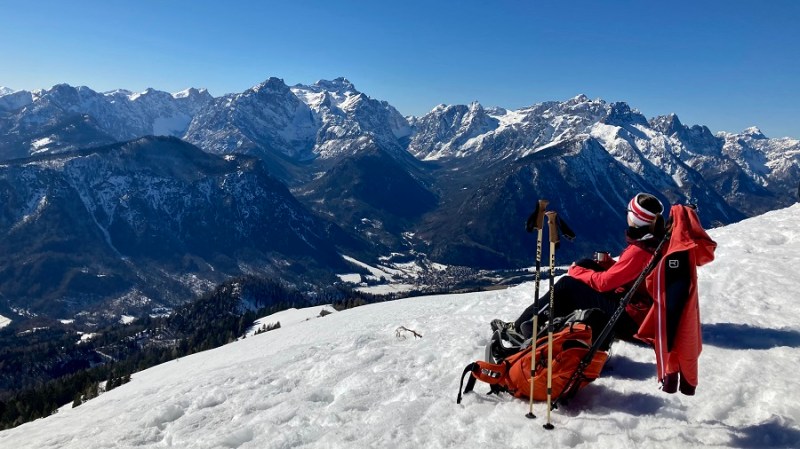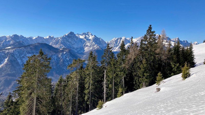 Današnje nedelje zagotovo ne bova nikoli pozabila. To je bil dan v našem visokogorju za čisto desetko! Ob osmih sva že parkirala malce višje od vasi Dovje na makadamski cesti proti izhodišču za Dovško Babo (1.891 m). Upala sva, da bo šlo višje, a so bile zelo hitro neprevozne debele snežne zaplate. Urno sva se že 8.15 zjutraj z nekaj turnimi smukači podala proti vrhu kar po makadamski cesti. Kmalu je bilo na cesti že za meter snega, zato sva nadela dereze. Bilo je okoli ničle, a jutranje sonce naju prijetno grelo. Kmalu sva začela opazovati Triglav z vsemi okoliškimi gorami. Neprecenljivo. Po dveh urah sva prispela do planine Dovška rožca, od koder je čudovit razgled. A ko sva se po 45-minutah povzpela še na vrh Dovške Babe je bil razgled še vsaj za nekaj odtenkov lepši. Brez oblaka in brez sapice vetra sva se martinčakala na vrhu in občudovala najlepše vrhove Slovenije. Vse tri Triglavske doline sva imela pred nosom s Triglavom, Mežaklo, Pokljuko, Stol in na drugo stran Avstrija. Videlo se je daleč stran na vse strani neba. Čudovito nedeljsko kosilo v objemu naših gora. Presenetljivo nas je bilo na celi poti le peščica, tako da sva ves čas hodila popolnoma sama, kar je v našem hribovju že kar pravi čudež. Neprecenljivi trenutki!