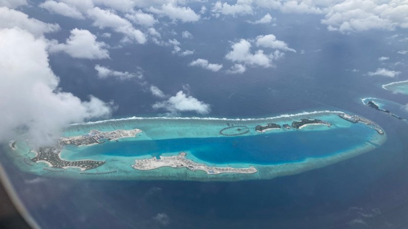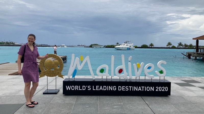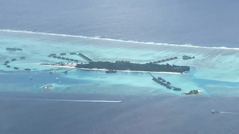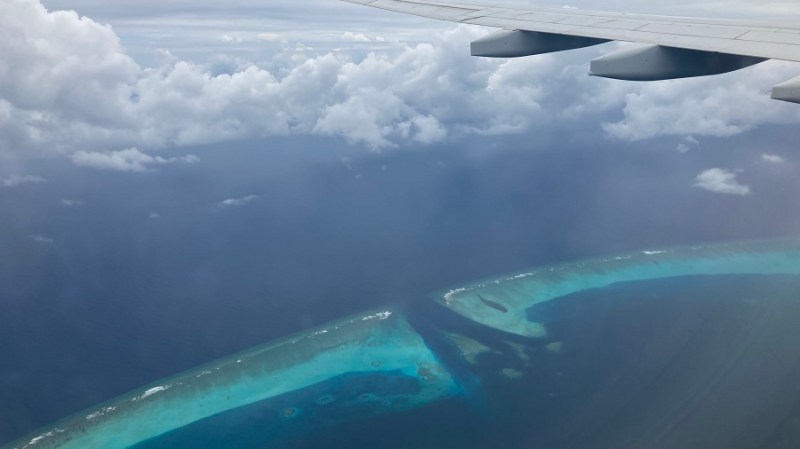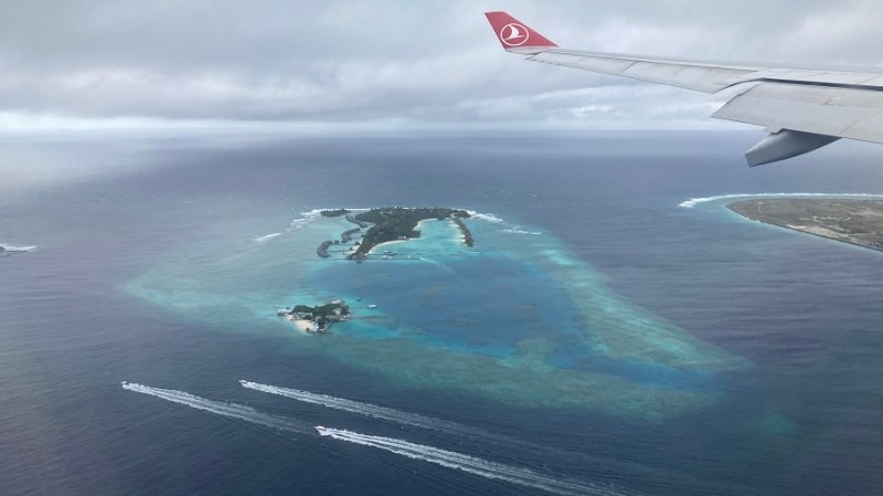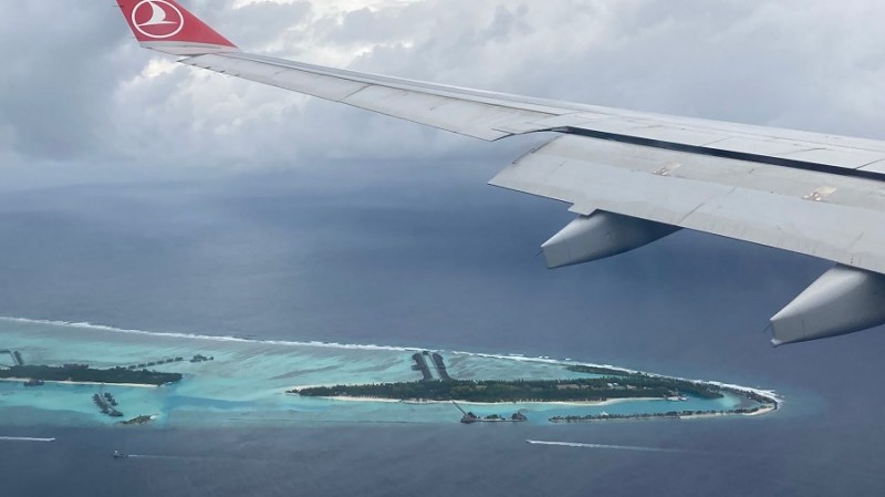 Potovanje na Maldive je bilo tokrat precej nestresno, ker sva v resnici že vse poznala, saj sva bila na istem mestu pred manj kot dvema letoma. Na Maldive boste skoraj vedno prileteli podnevi in boste lahko s svojega letalskega okna občudovali prekrasne atole. Ko jih prvič zagledaš, misliš da sanjaš. Tako je samo v reklamah in časopisih. Tokrat je bilo pri nama slabše vreme, zato turkizne barve v atolih niso tako izstopale, a vseeno nebeški pogled. Na letališču sva bila zelo domača. Tako sva se hitro preoblekla, saj je v naju butnila neznosna vročina in vlaga. Prileteli smo opoldne, tako da sva imela čas za odličen tajski pad thai za kosilo, dvignila lokalni denar na bankomatu za celoten čas potovanja (cca. za 230 EUR), kupila v lekarni “mehčalec” proti komarjem in nato počakala na hitri čoln za najin otok Feridhoo, ki sem ga rezevirala skozi rezervacijo nastanitve. Vse nastanitve na Maldivih jaz vedno rezerviram na Bookingu, tam pa vas takoj povprašajo za prevoz in vam rezervirajo hitri čoln, tako da nimate nobenih skrbi. Pridejo vas počakati na izhodu iz letališča in vas nato opremijo z informacijami. Hitri čoln bi moral odpeljati ob 16h, a je imelo eno letalo 1-urno zamudo, zato smo počakali potnike in krenili šele ob 17h. Prva postojanka je bil otok Rashdoo, nato Ukulhas in tretji Mathiveri že ob trdi temi. Na Mathiverjiju sva prestopila na drugi čoln, ki naju je odpeljal na najin Feridhoo, kamor sva prispela ob 19h zvečer. Takrat je na Maldivih res že trda tema, zato nisva imela pojma, kako otok izgleda. Na otoku ni avtomobilov, zato sva se peš sprehodila do najine nastanitve. Po dolgem dnevu in pol poti sva skočila pod hladen tuš in v udobno posteljo do naslednjega jutra.