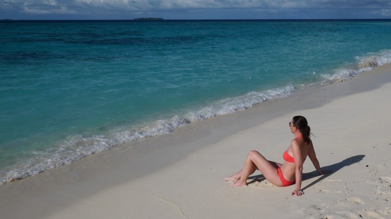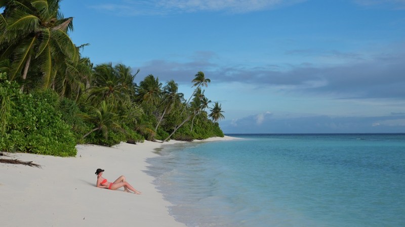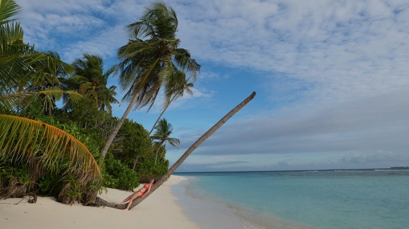 Končno vam bom predstavila tudi raj na Zemlji (video) Seveda je bil glavni razlog najinega obiska otoka Feridhoo poležavanje na rajski plaži in kopanje v turkiznem morju. To sva tudi počela dan za dnem vse dni. Maldivski poseljeni otoki z več turističnimi nastanitvami imajo v večini tudi lepo urejeno bikini plažo. In otok Feridhoo ni nobena izjema. Otok sem našla skozi opise popotnikov na Bookingu in na Google Mapsu iz zraka. Izgledalo je fantastično in tako je tudi v resnici. Za naju je Feridhoo pravi košček raja na Zemlji! Vseh 5 dni sem se ščipala, če slučajno sanjam.