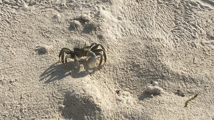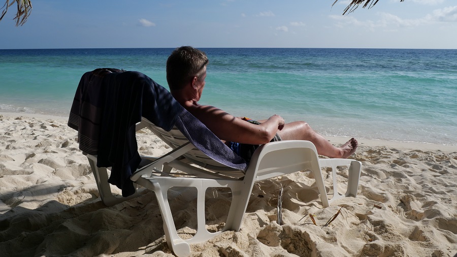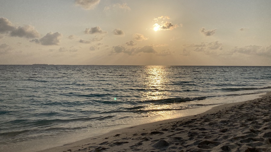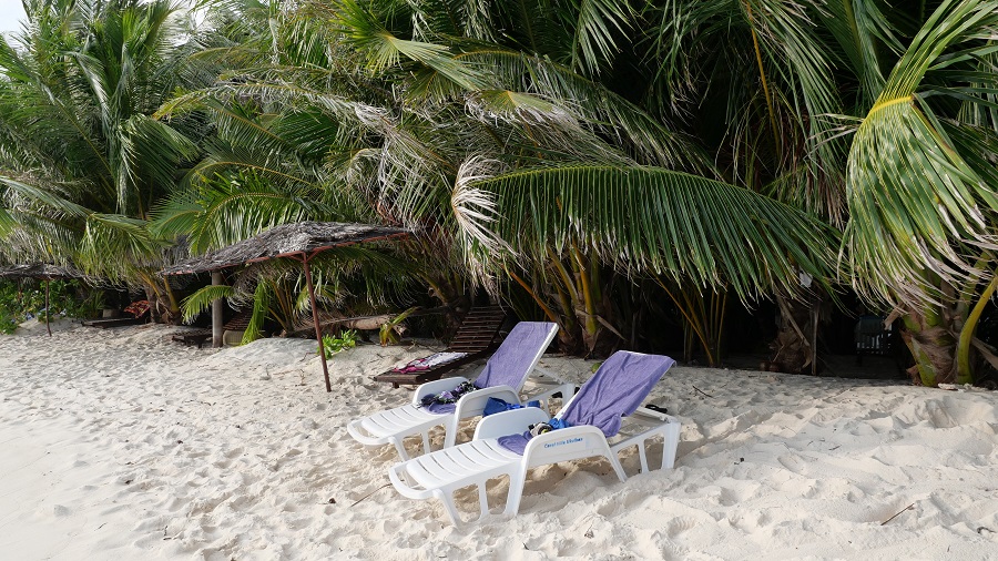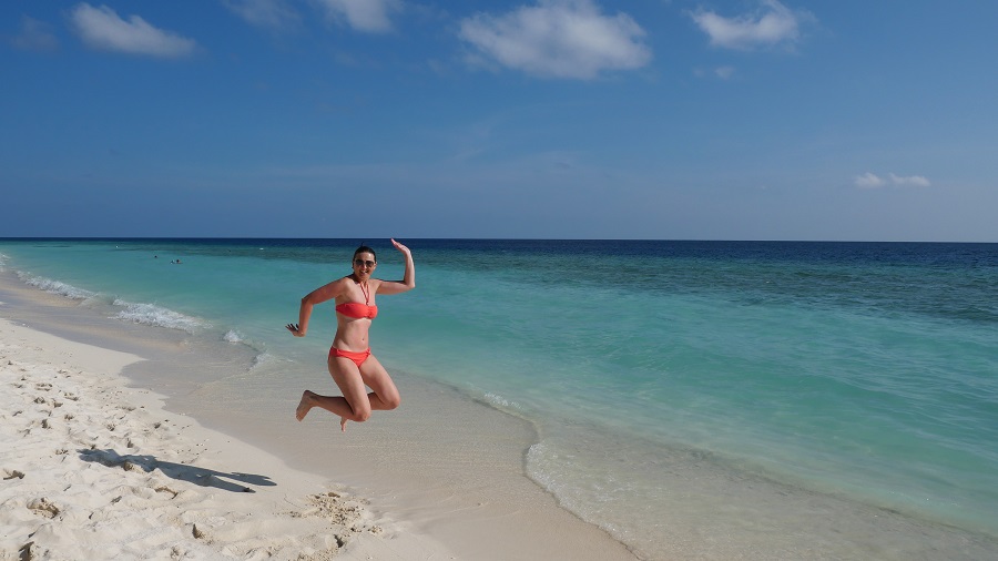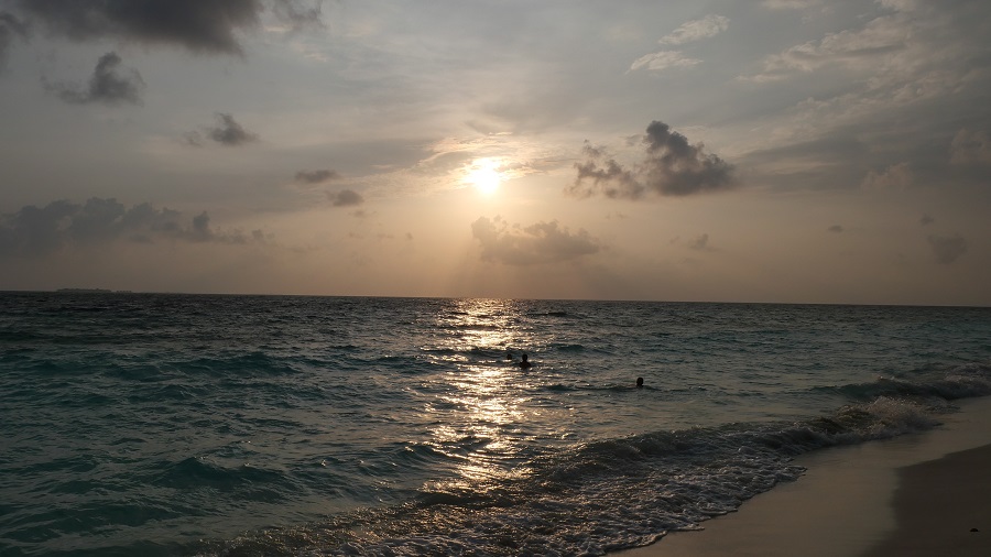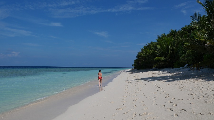Po odličnem zajtrku sva bila prva na plaži in ni nama bilo žal. Okrog osmih zjutraj je na plaži najlepše. Sprehod, umirjeno morje, nikjer nikogar. Sprehod ob nežnih sončnih žarkih, plavanje v toplem turkiznem morju v jati majhnih ribic. Ležanje pod palmo v naravni senci. Lepota modrih odtenkov morja mi ne pusti zatisniti očesa niti za sekundo. Svež kokosov oreh za osvežitev in mangov sok za popoln užitek. Sredi dneva odlično kosilo, nato pa popoldan isti program do sončnega zahoda. Sladica in škampki za večerjo. Dan za dnem isti program. To so prave rajske počitnice!