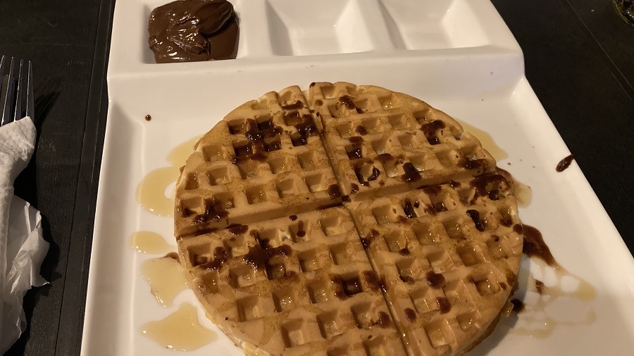 - mango juice, 2 vaflja z Nutello = 370 MVR (21,3 EUR)