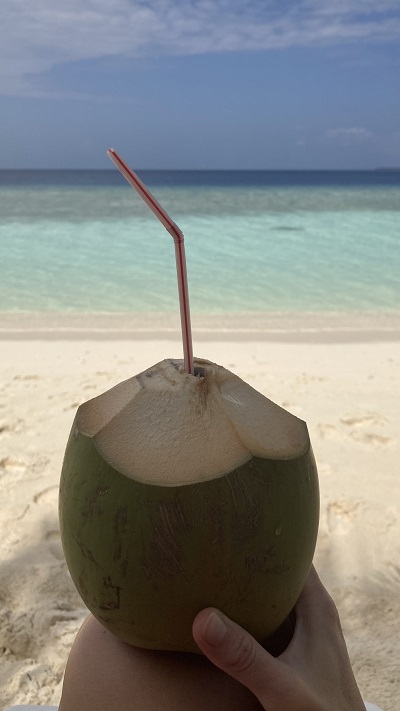 - na Niki kapučino in sveži kokos = 152 MVR (8,7 EUR)