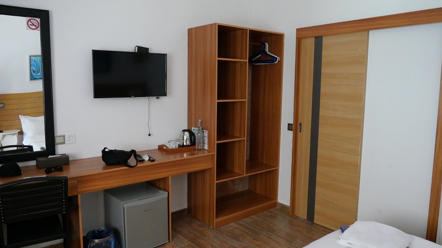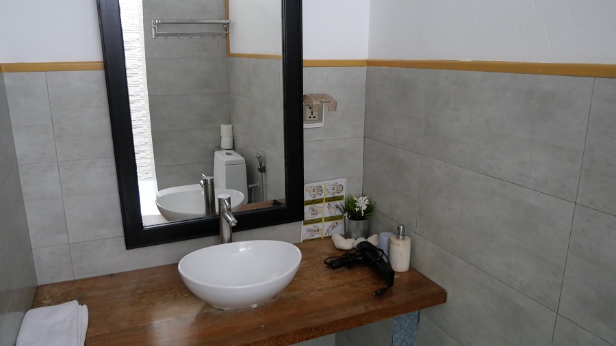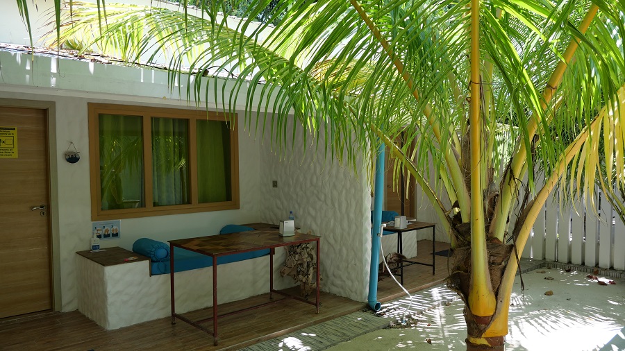 Kot sem že zapisala je Nika Island Resort & Spa na poti redne linije hitrih čolnov med otokoma Mathiveri in Ukulhas, zato imate poceni in krasno povezavo do otoka Ukulhas. Dopoldne sva preživela še v Niki na plaži, nato pa naju je ob 13h pobral hitri čoln, ki naju je odpeljal na otok Ukulhas. Do Ukulhasa je z Nike le dobrih deset minut vožnje, tako da sva bila res hitro na najini zadnji destinaciji. In tudi poceni prevoz je. Nastanila sva se v najinem apartmaju, ki ima zagotovo najboljšo pozicijo na otoku. Prva vrsta ob najlepšem delu plaže, lastne brezplačne ležalnike in dovolj naravne sence pod palmami. Apartma je bil povsem nov, velik in zelo lep. V ceno sva imela vključen tudi odličen zajtrk, tako da se res nimava kaj za pritoževati in ga res lahko priporočim.