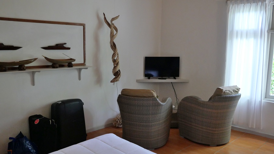 Za obisk otoka Ukulhas sva se odločila že doma, zaradi njegove lepote in odlične lege. Do Ukulhasa je z Nike le dobrih deset minut vožnje, tako da sva bila res hitro na najini zadnji destinaciji. Nastanila sva se v najinem apartmaju Trip Villa, ki ima zagotovo najboljšo pozicijo na otoku. Prva vrsta ob najlepšem delu plaže, lastne brezplačne ležalnike in dovolj naravne sence pod palmami. Apartma je bil povsem nov, velik in zelo lep. V ceno sva imela vključen tudi odličen zajtrk, tako da se res nimava kaj za pritoževati in ga res lahko priporočim. Cena za nočitev z zajtrkom je bila 103 USD (87,3 EUR).