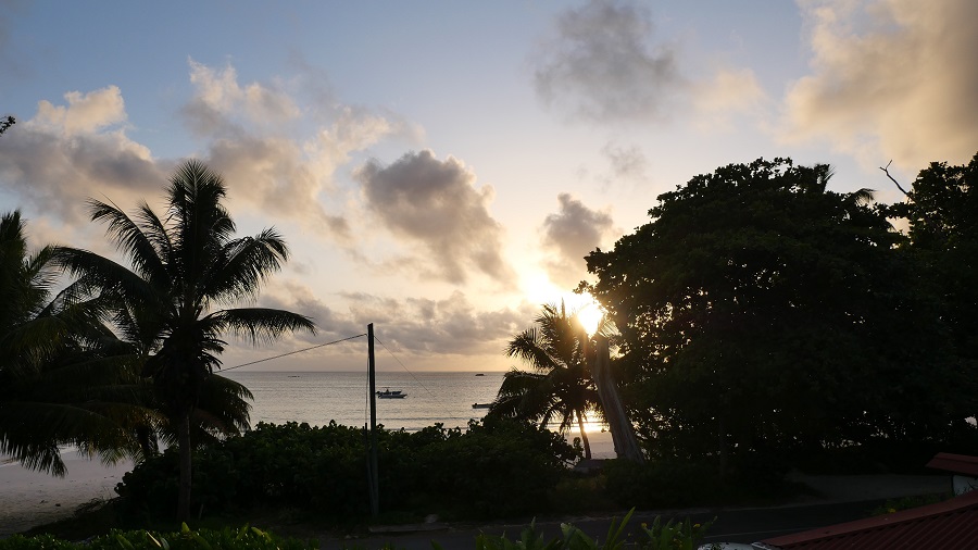 Zbudila sva se že pred sončnim vzhodom in tokrat nisva imela zajtrka v nastanitvi, ampak sva si ga na poti do plaže kupila. Sicer sva imela v mislih kakšen bolj fensi postanek v lokalu, a na koncu sva dobila v eni od indijskih restavracij le bananine miške in pecivo. Kavo in čaj sva si skuhala v apartmaju ob opazovanju čudovitega sončnega vzhoda z balkona. Če sva prejšnji dan vriskala od veselja na plaži Anse Lazio, sva tokrat kričala od veselja na plaži Anse Georgette. Še mnogo mnogo lepša in zagotovo najlepša po najinem okusu na Sejšelih. Na plaži sva ostala do dveh popoldne, ker sva imela v načrtu še ogled naravnega rezervata Vallee de Mai. Nazaj grede sva se ustavila še v “Take Away” restavraciji za kosilo. Zvečer pa sva si ponovno privoščila dolg sprehod po naši plaži. Prekrasno!