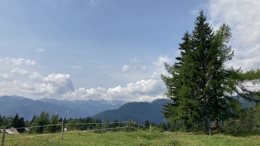 Kadar je v dolini prevroče, je Pokljuka vedno dobra izbira. Vročo julijsko nedeljo sva namenila odličnemu kolesarskemu izletu. Že pred deveto uro zjutraj sva parkirala na popolnoma prazni Pokljuki. Z gorskimi kolesi sva se odpeljala mimo Šport Hotela in naprej do vasi Goreljek. Pokljuka je nama res neverjetno lepa in vedno uživava. Svež gorski zrak v poletni vročini pa še toliko bolj prija. Sledil je dolg in strm spust skozi prelepo pokrajino do Srednje vasi v Bohinju. Vseskozi sva imela zelo lep pogled na Vogel in ostale vršace. Sledil je dolg, a zelo lep vzpon po makadamski cesti do Uskovnice. V koči sva si seveda zasluženo privoščila najboljše sirove štruklje v Sloveniji. Še postanek pri kapelici in nato povsem simpatičen zadnji vzpon do hotela in parkirišča. Na poti domov pa še hiter postanek na Bledu za kremšnito. Krasen dan!