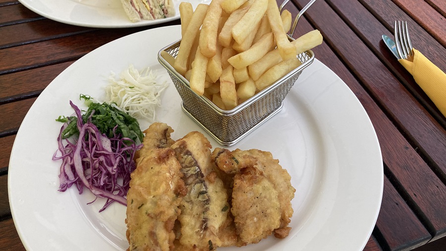 - izvrstno kosilo (club sendvič, fish&chips, kokosov sladoled, voda) = 360 SCR (19 EUR)
