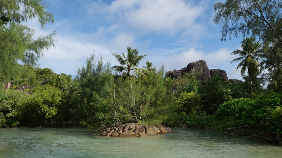 Zbudila sva se v oblačno, a ne več deževno jutro. Takoj po zajtrku sva morala pretegniti mišice, zato sva se s kolesi podala povsem na sever otoka in potem naokoli do konca ceste v zaliv Fourmis. Otok je sicer majhen, a še vedno dovolj velik, da lahko se lahko kar dobro rekreiraš vsak dan, če le želiš. Do zaliva sva potrebovala slabe pol ure vožnje s postanki in razgledi. Ob povratku so se oblaki že trgali, zato sva se odločila za vstop v nacionalni park L’Union Estate, skozi katerega je vhod na eno najlepših plaž na svetu Anse Source d’Argent. Za vstop v park/plažo je potrebno plačilo vstopnine, zato sva preostanek dneva preživela na tej čudoviti plaži.