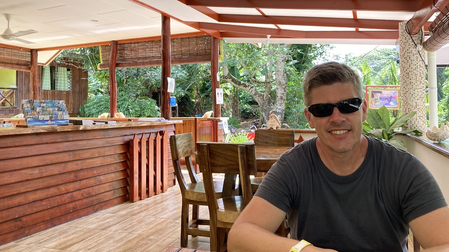 - izvrstno kosilo (solata, fish&chips, kokosov sladoled, cheesecake, voda) = 500 SCR (26 EUR)