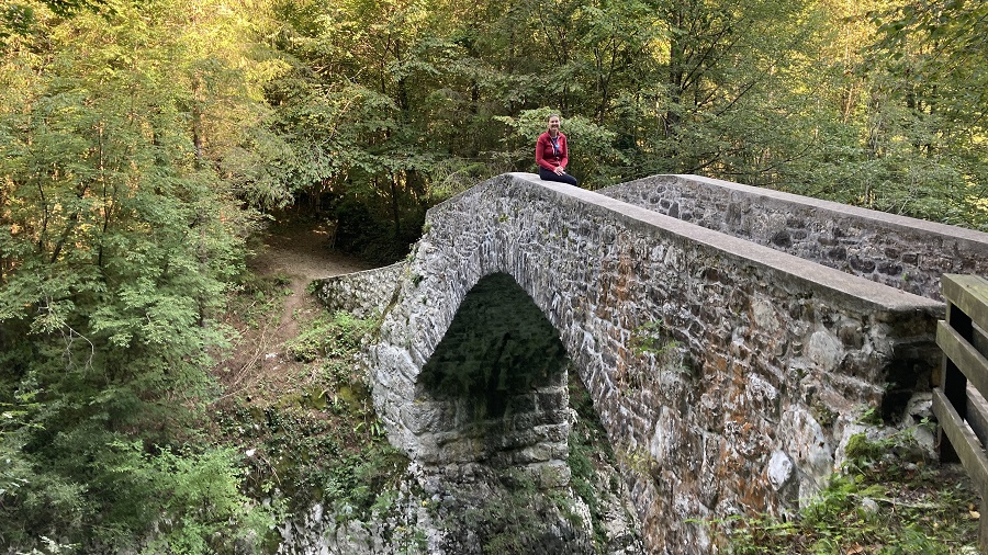 Prekrasen sončni vikend v začetku septembra sva preživela v Kobaridu. Vikend je bil zelo aktiven in kolesarsko obarvan, a vmes sva si vseeno uspela pogledati tudi kakšno od lepih znamenitosti v okolici. Ker sva si v Kobaridu že ogledala izjemen slap Kozjak in prekrasna Tolminska korita, sva si tokrat izbrala Napoleonov most čez Nadižo. Je kamnit stopničast ločni most nad koriti reke Nadiže blizu vasic Podbela na skrajnem zahodu Slovenije. Zgradil bi ga naj leta 1812 zidarski mojster iz vasi Čenebola. Pod mostom je tudi lep in globok tolmun primeren za kopanje. Napoleonovo ime nosi, ker je bil zgrajen v času njegovih osvajalskih pohodov. Ker pa je bil zelo vroč vikend, sva se morala popoldne tudi malce ohladiti. Seveda sva oba prvič zaplavala v dokaj hladni reki Nadiži, ki je imela le 17,4 stopinj. Priznam, da sva bila prvič v tako hladni vodi in nama je izredno ustrezalo. Jaz sem se posebej uživala in presenetila še sama sebe ter preživela v vodi kar slabe pol ure. In čisto nič me ni zeblo! Prava fantastika.