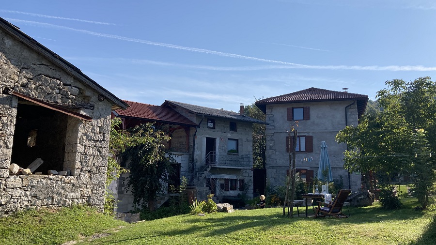Na prečudovito septembrsko soboto sva se prebudila v Kobaridu. Ker v najini nastanitvi nisva imela zajtrka, sva si skuhala samo kavico in čaj ob prvih jutranjih žarkih, ko so vsi še spali. In se odpeljala do najzahodnejše slovenske vasi. Malce sva raziskovala in v resnici sploh nisva vedela za ta slovenski dragulj. V vas Robidišče sva prispela že okrog osme zjutraj in se veselila raziskovanja. Vas leži na nadmorski višini 650 m v Breginjskem kotu in meji z Italijo v tri smeri neba. Le korak stran je Beneška Slovenija. Robidišče ima res odmaknjeno lego s prekrasnimi razgledi. Nisva si predstavljala, koliko nostalgije in spominov prinaša obisk. Obisk te res ne pusti ravnodušnega, čeprav je vasica v precej slabem stanju.