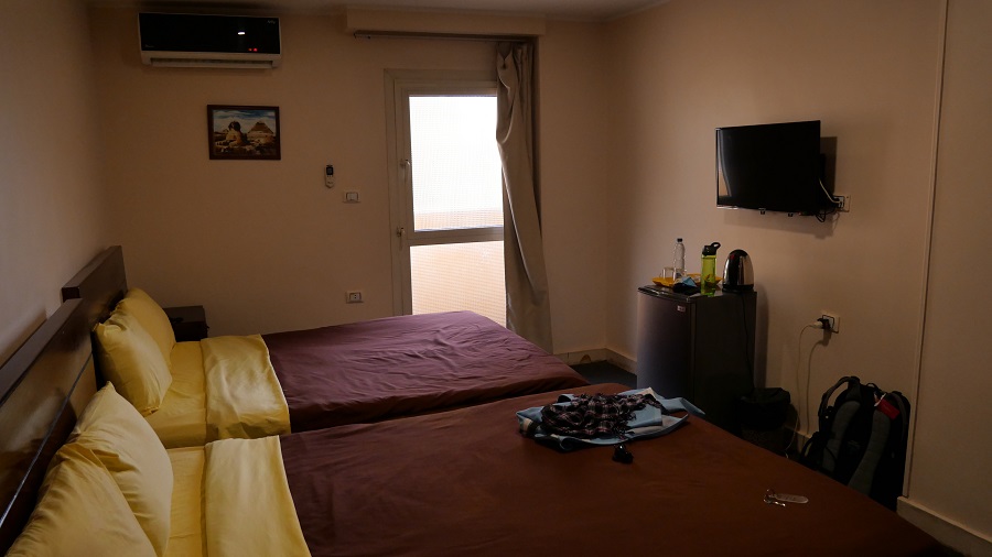 Ob obisku Gize je ključno, da imate hotel ob piramidah. Najin hotel je bil sicer že v drugi vrsti, a še vedno s teraso in pogledom na piramide. Sicer pa so bile sobe zelo enostavne in tudi kopalnica je bila majhna. A za najine potrebe več kot dovolj, sploh glede na ceno nočitve. Bolj izbirčni vzemite kaj dražjega v bližnji okolici.