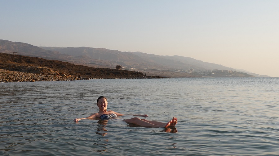 Sledilo je seveda kopanje v Mrtvem morju. Sam dostop do Mrtvega morja zna biti precej težaven, ta hotel pa ima zelo lepo urejen dostop in lepo urejeno plažo. Seveda dobiš tudi brisače, tako da vam za to ni treba skrbeti. Stare kopalke nase in gremo v morje. Mrtvo morje leži v veliki depresiji, v Jordanskem tektonskem jarku, ki nima naravnega izhoda. V Mrtvo morje priteka reka Jordan, ki pa ne zadostuje za ohranjevanje stalnega nivoja vode, zato gladina Mrtvega morja stalno upada. V različnih virih najdemo podatke, da leži gladina več kot 420 metrov pod običajno morsko gladino. Kraji ob obali Mrtvega morja so tako najnižje ležeče kopno na Zemlji. Površina jezera meri okoli 600 km² in se zmanjšuje. Eden od glavnih razlogov za upadanje jezerske gladine je iz leta v leto manjši dotok, saj Izrael in Jordanija uporabljata reko Jordan za preskrbo s pitno vodo. Zaradi upadanja gladine je bilo Mrtvo morje proglašeno za ogroženo jezero. Z izhlapevanjem vode se slanost jezera povečuje. Povprečna slanost vode znaša okoli 28%, v najbolj slanih predelih pa tudi do 33%. Mrtvo morje je drugo najbolj slano jezero na svetu. Za primerjavo je slanost običajne morske vode je okoli 3%. Zaradi slanosti v jezeru ne živi noben večji organizem (od tod tudi ime Mrtvo morje), pač pa le nekaj mikroorganizmov, zlasti anaerobne bakterije.