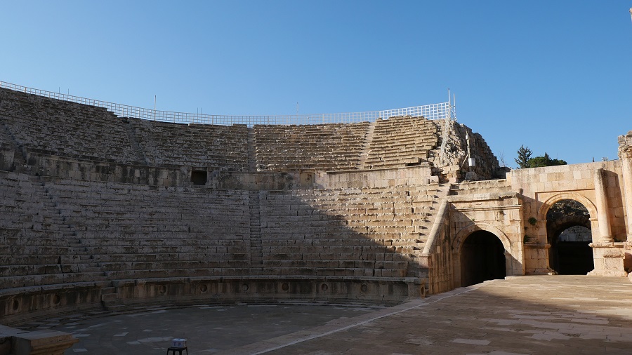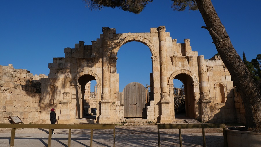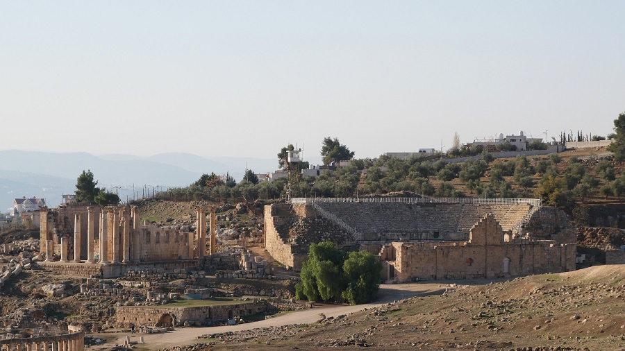 Po obilnem domačem zajtrku, ki je bil nadvse okusen, sva se odpravila na ogled arheološkega mesta Jerash, ki še vedno leži v osrčju mesta. Staro in novo se prepletata, kar je res lepo za videti. Bila sva prva obiskovalca še pred odprtjem okrog osme ure zjutraj in sva kar vstopila, ker je odprto.