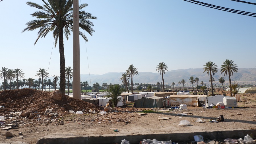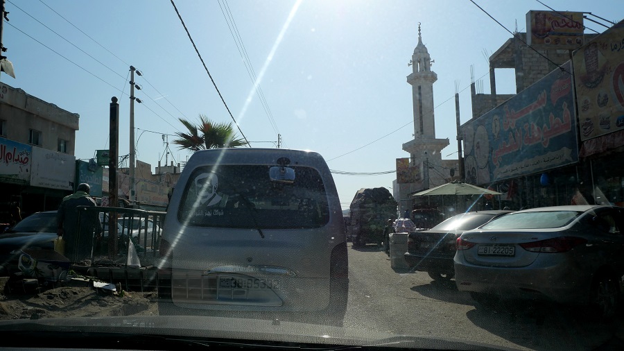 Do Mrtvega morja sva se iz mesta Umm Qais spustila ob reki Jordan. Počasna vožnja naju je presenetila, saj pelje glavna cesta skozi vse vasi, kjer pa se še vedno vse dogaja na cesti in ob cesti, zato je izjemna gneča. Ampak vsekakor je pa med vožnjo lepo opazovati življenje domačinov. Reka Jordan je dolga kar 251 km in teče od severa proti jugu od Galilejskega morja pa vse do iteka v Mrtvo morje. Reka je tudi meja med Izraelom in Jordanijo, zato poteka med obema že od nekdaj boj za vsako kapljo. Reka ima tudi velik pomen v judovstvu in krščanstvu. Po Svetem pismu so jo Izraelci prečkali v obljubljeno deželo in Janez Krstnik je v njej krstil Jezusa iz Nazareta. Največji izziv je pretok reke, ki je praktično z namakanjem polj ob reki, skoraj že usahnil. Pretok reke Jordan je bil nekoč 1,3 milijarde kubičnih metrov na leto. Od leta 2010 se v Mrtvo morje izliva le še 20 do 30 milijonov kubičnih metrov na leto, kar seveda znižuje tudi gladino Mrtvega morja. Vse do začetka 21. stoletja so bile vode reke Jordan največji vodni vir za Izrael. V zadnjem času je to vlogo prevzela razsoljena morska voda iz Sredozemlja. Izraelski nacionalni vodoprevoznik, ki je bil dokončan leta 1964, je več kot štiri desetletja dostavljal vodo iz Galilejskega jezera na izraelsko obalno nižino, dokler dolgotrajna suša ni privedla do opustitve te rešitve v korist razsoljevanja. Med vožnjo lahko opazujete velike njive in rastlinjake, v katerih gojijo domačini zelenjavo in sadje, ki ga potem prodajajo ob cesti. Skromna domovanja v šotorih ob njivah pa pričajo na slabe življenje razmere domačinov.