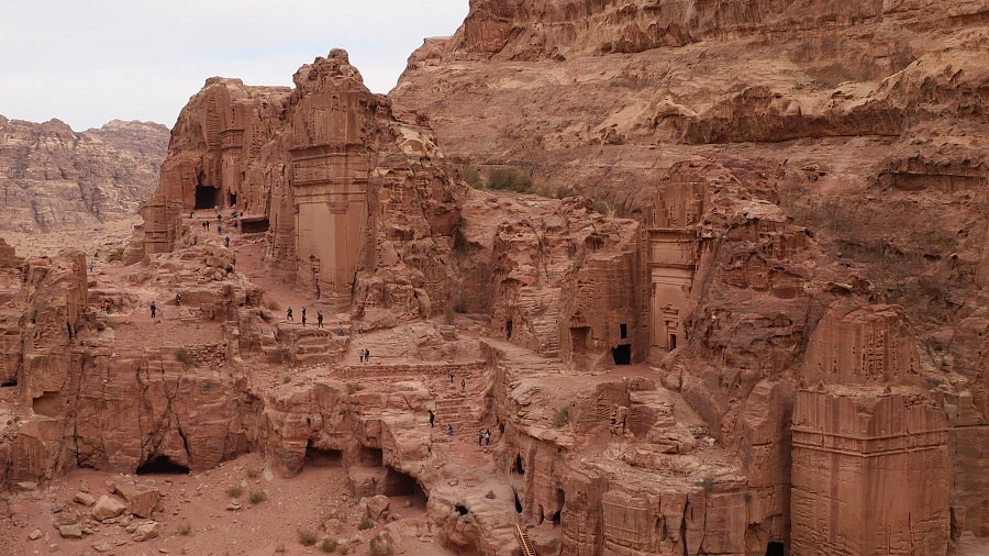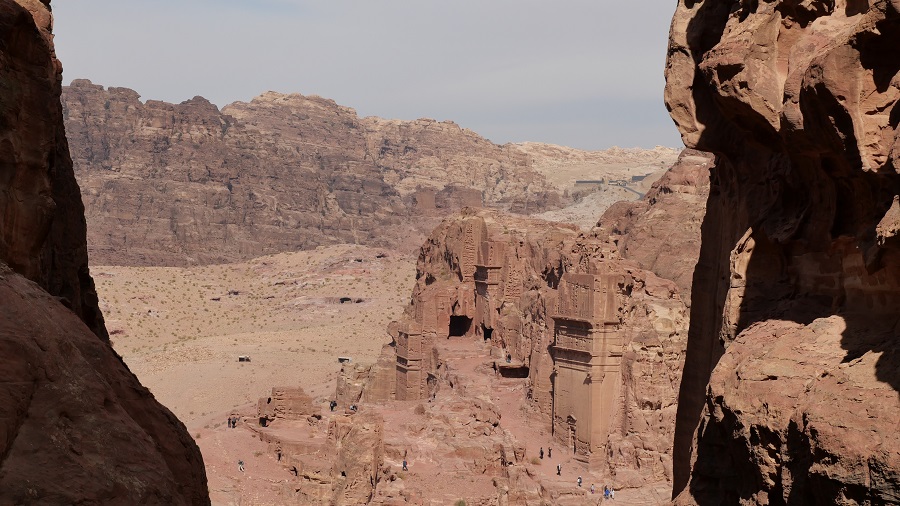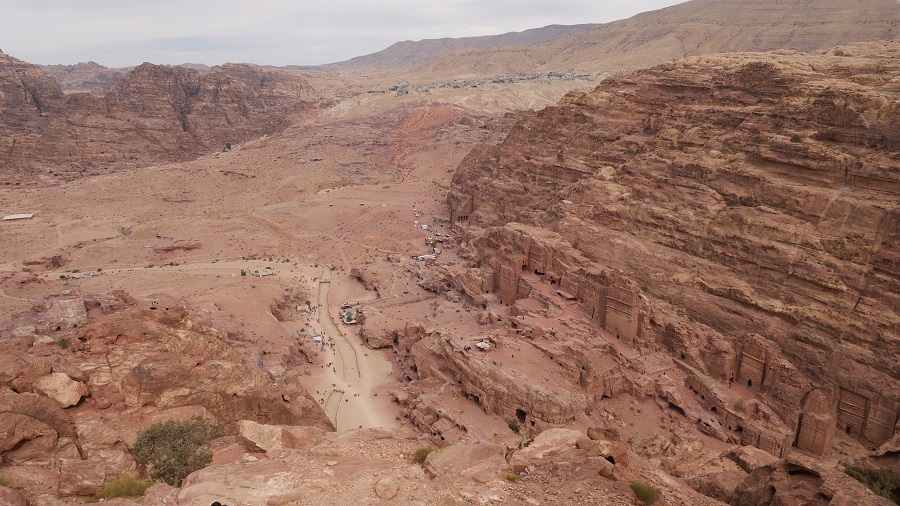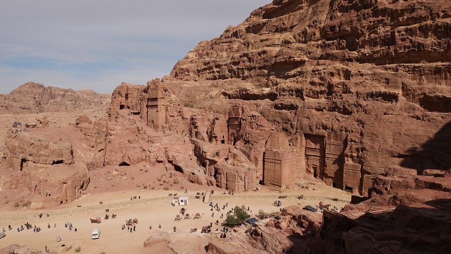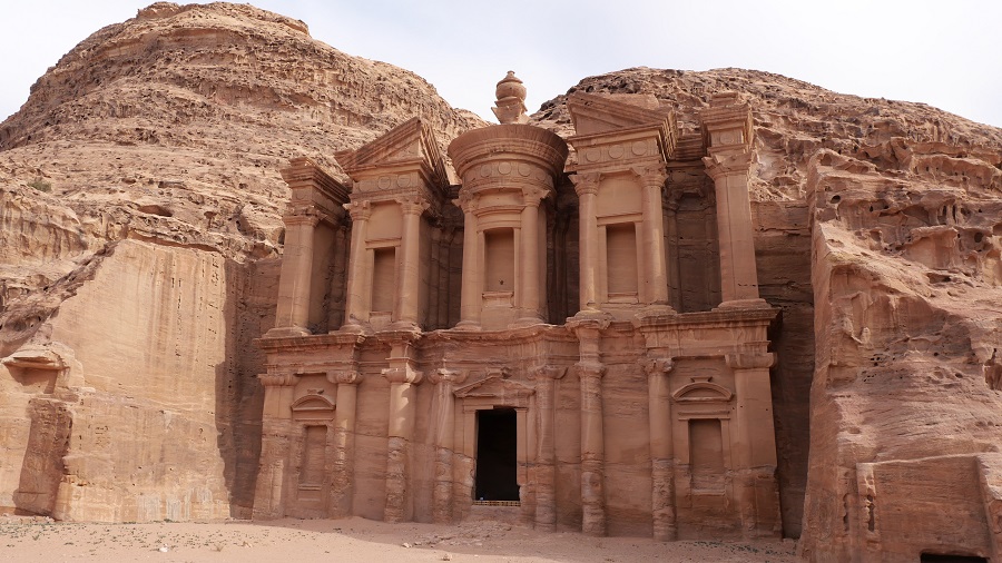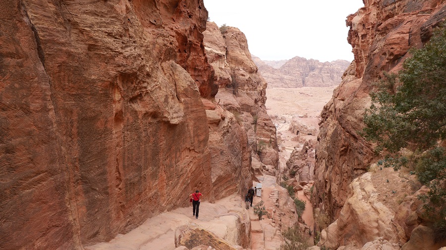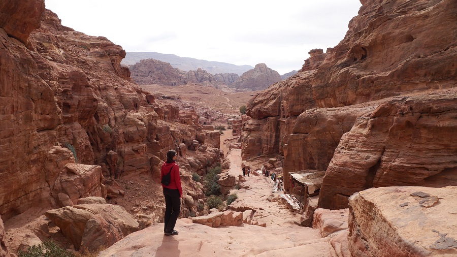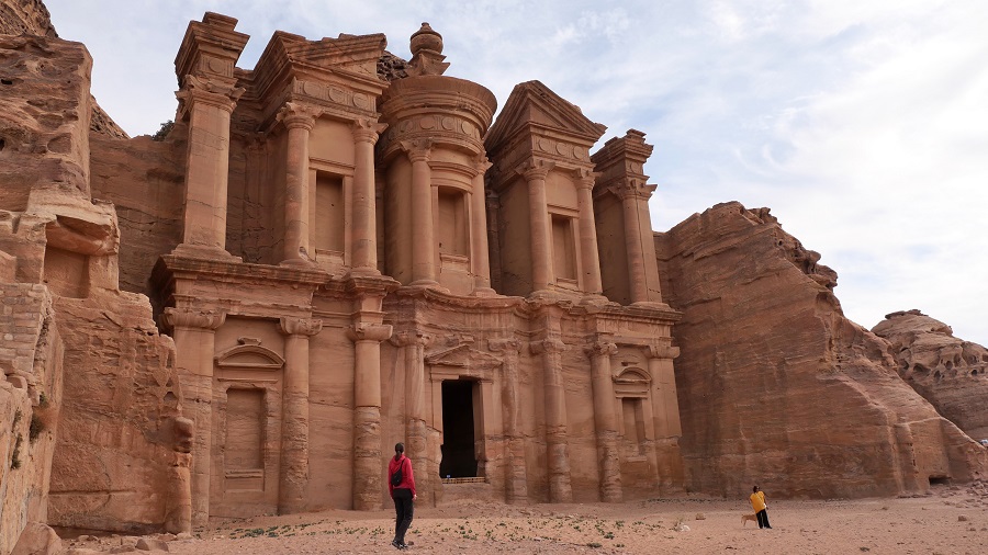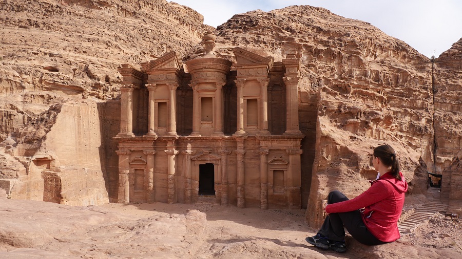 Od vhoda do znamenitega Samostana se boste pa kar malce preznojili, saj boste potrebovali od začetka do vhoda vsaj 6 km hoje v eno smer in premagati boste morali 800 stopnic. Nič hujšega, a vseeno nekaj kondicije pa potrebujete. Ker potem je potrebno priti seveda še nazaj. Midva sva bila zgodaj in sva imela res ljubi mir pri hoji po stopnicah. Med hojo boste videli mnoge žene Beduinov, ki turistom prodajajo spominke. Tu in tam je tudi manjša postojanka za pijačo. Vseskozi vas spremlja lep razgled nazaj na Petro, tako da boste lahko v miru zajeli sapo. Ko pridete na vrh, se odpre pokrajina in s tem tudi prečudovit pogled na Samostan. V skalo je bil prav tako izklesan v sredini 1. stoletja. Še večji, še lepši. Skratka z eno besedo – prečudovit. Ves trud je bogato poplačan v trenutku.