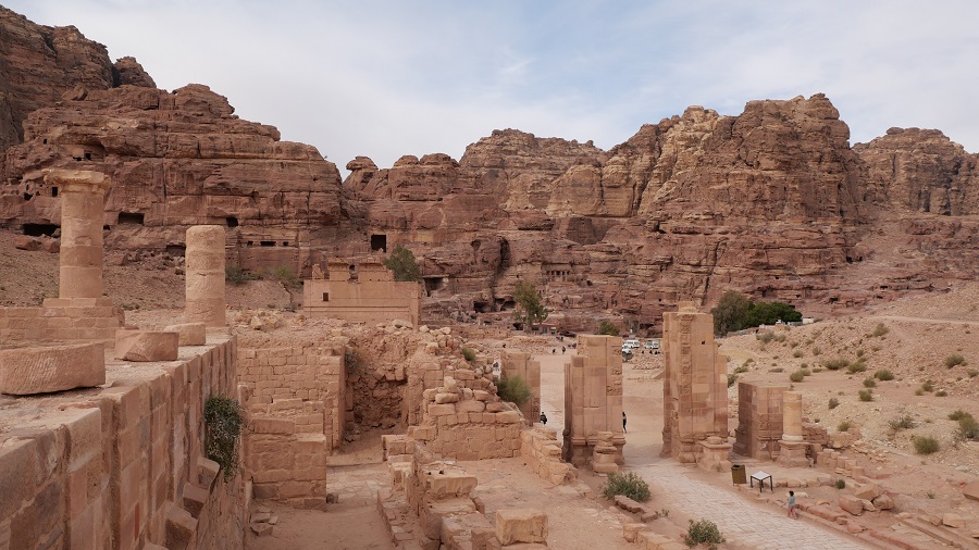 Po glavni tlakovani cesti se sprehodiva do Velikega templja, med tem pa opazujeva njegove Antične stebre. Od Velikega templja ni ostalo prav veliko, a si z lahkoto predstavljamo razsežnosti mesta. Še nekaj korakov naju loči do začetka stopnic, ki vodijo do znamenitega Samostana.