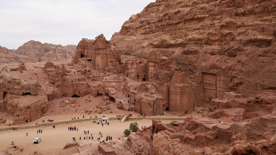 Z razgledne točke sva se spustila po enaki poti do grobnic, se sprehodila nazaj do Zakladnice, jo še malo občudovala in se poslovila od prečudovitega mesta. Čakalo naju je še pol ure hoje po soteski, noge so naju pošteno bolele. Temperatura za ogled je bila ravno pravšnja, potrebovala pa sva od kratkih rokavov pa tudi do puhovke, rokavic in kape. Torej čebulasto. S seboj sva imela tudi prigrizke in dovolj vode za cel dan. V Petri se lahko tudi okrepčate, saj so na voljo stojnice in tudi restavracija. Na voljo so tudi stranišča, tako da je za vse preskrbljeno. Sami poskrbite za dobro uhojeno obutev, saj sva midva prehodila več kot 20 km in naredila okrog 900 višinskih mestrov med ogledom. Zagotovo pa je vsak korak vreden, saj boste nagrajeni za svoj trud.