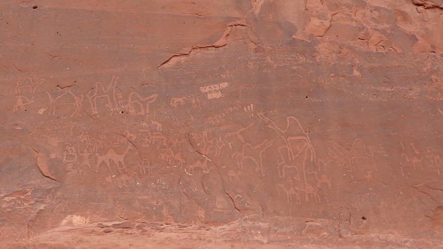 Kanjon Khaz’ali v Wadi Rumu je mesto petroglifov, vklesanih v jamske stene, na katerih so upodobljeni ljudje in antilope datirane v čas Thamūdov (starodavna civilizacija v Hedžazu, znana od 8. stoletja pred našim štetjem do blizu časa Mohameda). Manjhna soteska, nekaj korakov in lepi petroglifi na stenah.