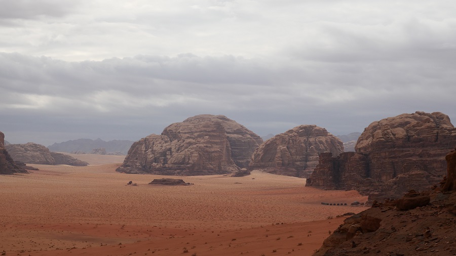 Nekaj dni sem vseeno premišljevala, kako obiskati Wadi Rum. Večina se odloči za 2-dnevni obisk, v katerega je vključeno vse (ogledi, nočitev in hrana). Ta možnost je tudi veliko bolj ugodna od najine. Med najinim obiskom pa se je ravno poklopilo, da je bilo silvestrovo. Sicer ga običajno ne praznujeva, a ker se je ravno poklopila, sva želela malce bolj luksuzno preživeti to noč. Sicer sva želela spati v napihljivih “Bubblih” s prozorno streho, a je bilo žal vse razprodano. Sicer so cene tudi res visoke (250 EUR in več na noč), a sem bila pripravljena toliko plačati. Na koncu sva bila celo vesela, da so bile razprodane, saj je bilo nebo obe noči precej oblačno, tako da zvezdic tako in tako ne bi videla. Kamp je bil zelo lep, urejen, res izjemen. Še vedno pa je to kamp. Priporočam, če se boste odločili za tovrstno bivanje. Signala v Wadi Rumu ni in s tem tudi ni interneta. Juhu!