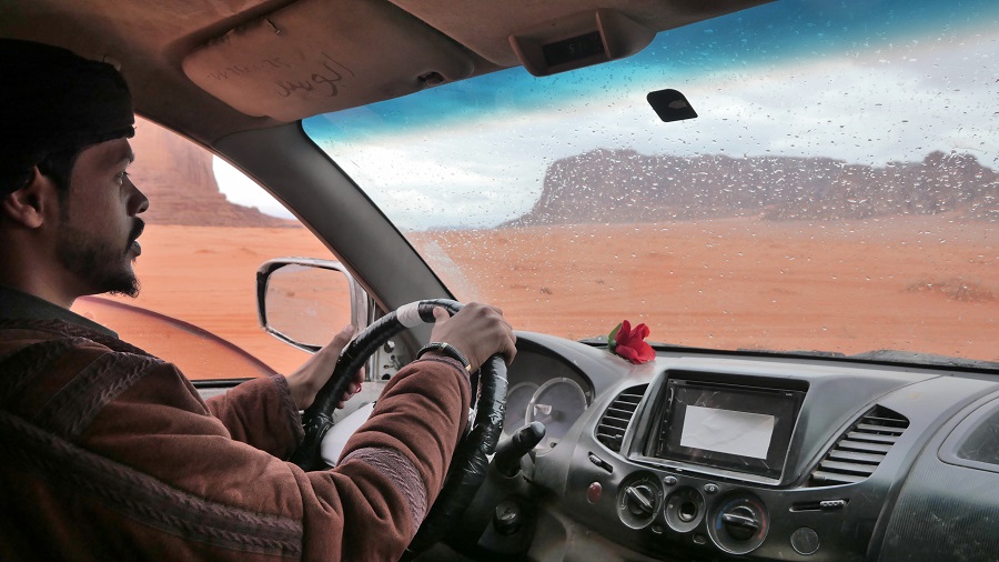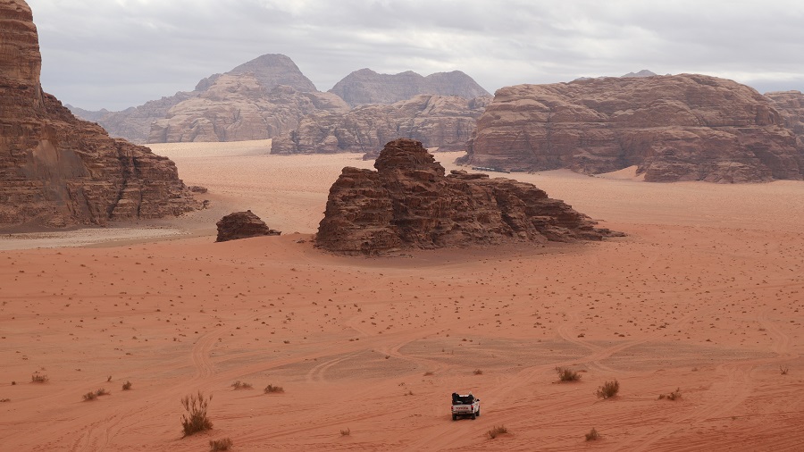 Dan pred prihodom v Wadi Rum sva izvedela, da so tudi najini prijatelji v Jordaniji in na hitro smo si izmenjali sporočila, da bomo vsi na isti dan v Wadi Rumu. A v Wadi Rumu ni signala, zato se nismo mogli ujeti. Hkrati pa prijatelji niso vedeli, kje bodo spali. Od jutra sem imela napete oči, če bodo v katerem izmed avtomobilov oni. In res so bili – srečali smo se sredi puščave že zjutraj. Dva avtomobila sva švignila mimo, zagledala sem znan obraz, zaustavili smo se, objeli, poklepetali in si zaželeli lepo silvestrovanje ter srečno novo leto. Uau, kakšna neizmerna sreča in veselje.