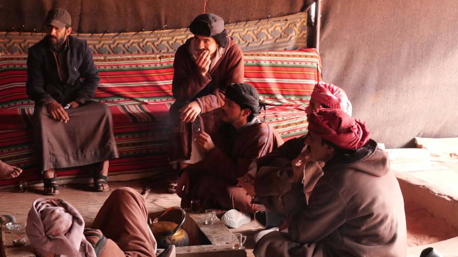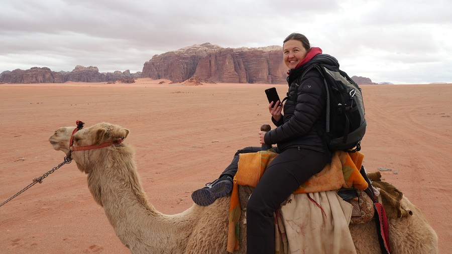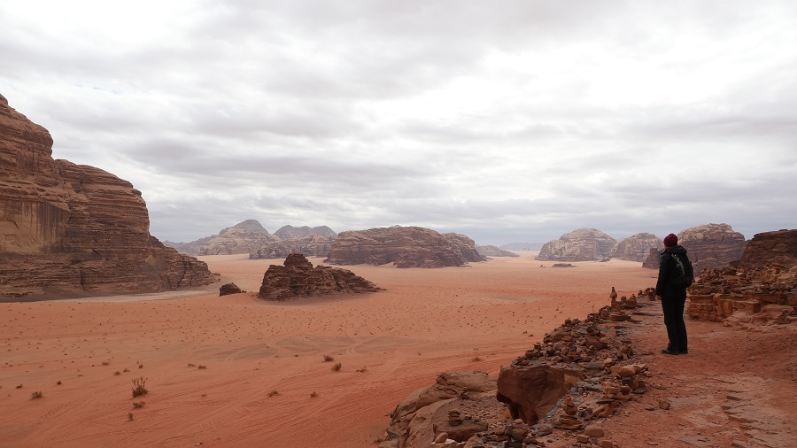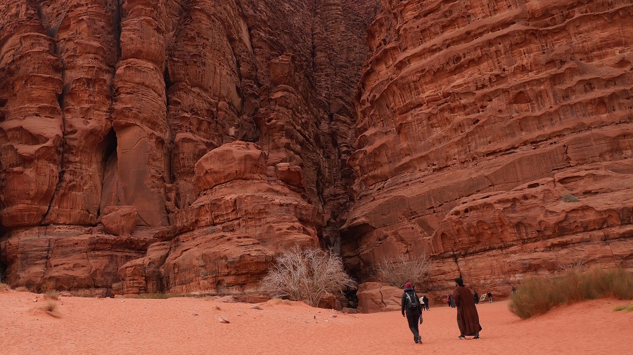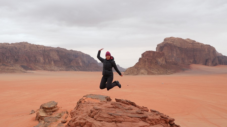 Nič nama ni bilo žal denarja za prenočitev v toplem šotoru sredi puščave Wadi Rum. Decembrske noči v puščavi so izjemno hladne, saj se temperatura spusti blizu ničle. Po okusnem zajtrku sva si privoščila 4-urni izlet po Wadi Rumu. Vsem turistom praktično pokažejo enake točke, ki so si sledile ena za drugo. Najprej nabatejske poslikave in petroglife. Nato smo se ustavili pri hiši slavnega Lawrenca Arabskega. Sledil je postanek pri naravnih oknih in skodelica toplega čaja. Ogledali smo si še petroglife v soteski Khazali in za konec vzpon po rdeči sipini do vrha na lep razgled. Ker sva imela še malce časa, sva se odločila za jezdenje kamel po puščavi. Večerne ure sva preživela ob ognju pod zvezdami in postregli so nam z izjemno silvestersko večerjo. Ko sva se odpravila v šotor k počitku, je lastnik kampa presenetil – pripravil je silvestersko zabavo z živo glasbo za svoje zaposlene in prijatelje ter peščico turistov. Pristno in nepozabno.