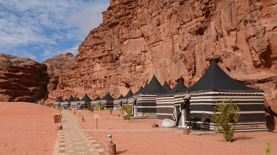 Nič nama ni bilo žal denarja za prenočitev v toplem šotoru sredi puščave Wadi Rum. Decembrske noči v puščavi so izjemno hladne, saj se temperatura spusti blizu ničle. Po okusnem zajtrku sva si privoščila 4-urni izlet po Wadi Rumu. Vsem turistom praktično pokažejo enake točke, ki so si sledile ena za drugo. Najprej nabatejske poslikave in petroglife. Nato smo se ustavili pri hiši slavnega Lawrenca Arabskega. Sledil je postanek pri naravnih oknih in skodelica toplega čaja. Ogledali smo si še petroglife v soteski Khazali in za konec vzpon po rdeči sipini do vrha na lep razgled. Ker sva imela še malce časa, sva se odločila za jezdenje kamel po puščavi. Večerne ure sva preživela ob ognju pod zvezdami in postregli so nam z izjemno silvestersko večerjo. Ko sva se odpravila v šotor k počitku, je lastnik kampa presenetil – pripravil je silvestersko zabavo z živo glasbo za svoje zaposlene in prijatelje ter peščico turistov. Pristno in nepozabno.
