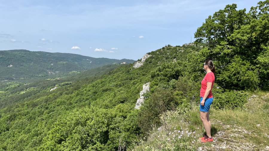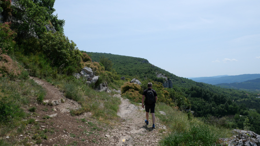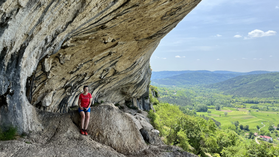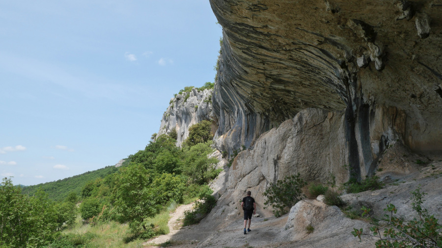 Konec maja je bilo že mogoče kar pozno za takšen pohod po južnem delu Krasa, saj je sredi dneva sonce že močno pripekalo. Avtomobil parkirate pri cerkvi Sv. Kvirika v Sočergi in se peš odpravite po zelo lepi označeni poti. Pot je zelo lepa in primerna tudi za majhne otroke, vseeno pa boste do znamenitih skal potrebovali v eno smer približno 45 minut. Pot se spušča po travniku in nato v enem delu poteka tudi skozi gozd. Ko se boste vračali, boste morali premagati slabih 300 višinskih metrov navzgor. Znameniti podmoli Veli Badin so prekrasno delo narave na južnem kraškem robu z prelepim razgledom. Midva sva bila na celi poti popolnoma sama, kar je prineslo še več veselja na najine obraze. Na poti si oglejte tudi zanimiv bunker in pa naravno okno. Sicer pa uživajte ob razgledih in v spomladanskem času tudi ob cvetenju divjih rastlin. Priporočam.