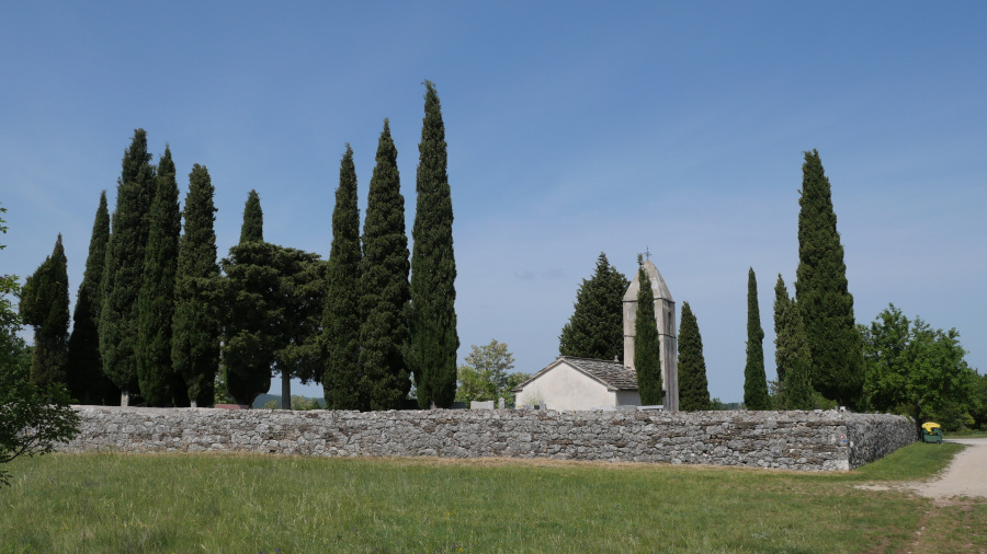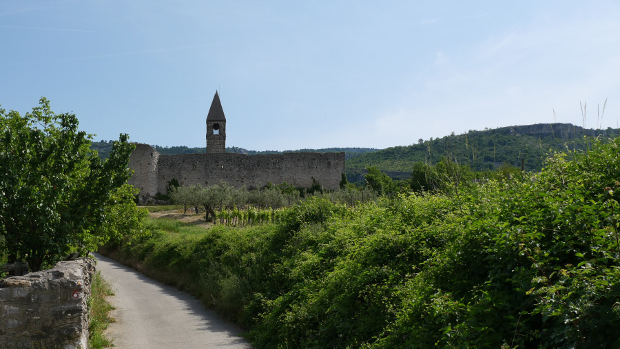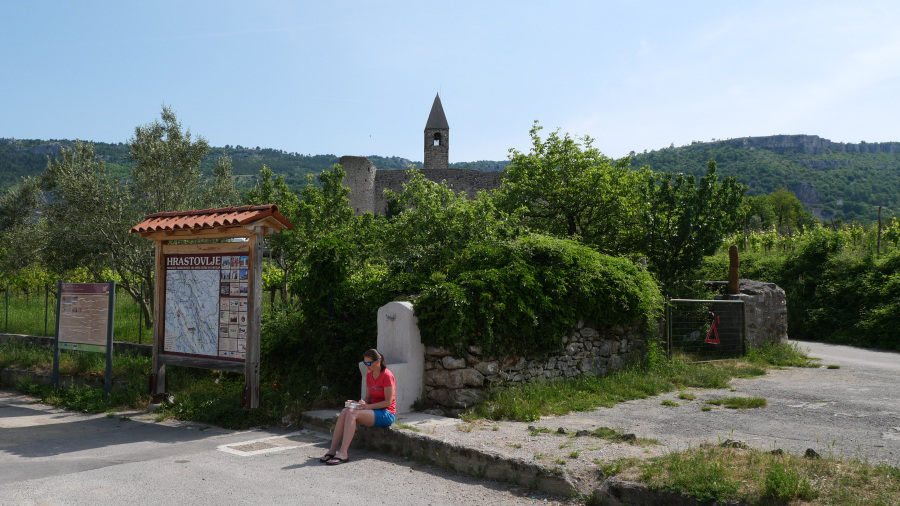 Prva najina postojanka na izletu je bila vas Hrastovlje, ki je že dolgo poznana po Cerkvi svete Trojice (vstopnina 3 EUR). Cerkev se nahaja za taborskim obzidjem, s katerim se je tamkajšnje prebivalstvo v 16. stoletju zavarovalo pred turškimi vpadi. Cerkev in obzidje sta zgrajena na živi skali in je zidana večinoma iz kamna, kar je značilnost celotne Istro. Nikoli ni bila v celoti ometana, zato lahko vidimo kako je bila cerkev grajena. Cerkev je dolga 11,7 metrov in široka 6,05 metra. S temi merami je ena najmanjših cerkev naokoli in ne presega niti povprečne širine in dolžine majhnih vaških podružnic.