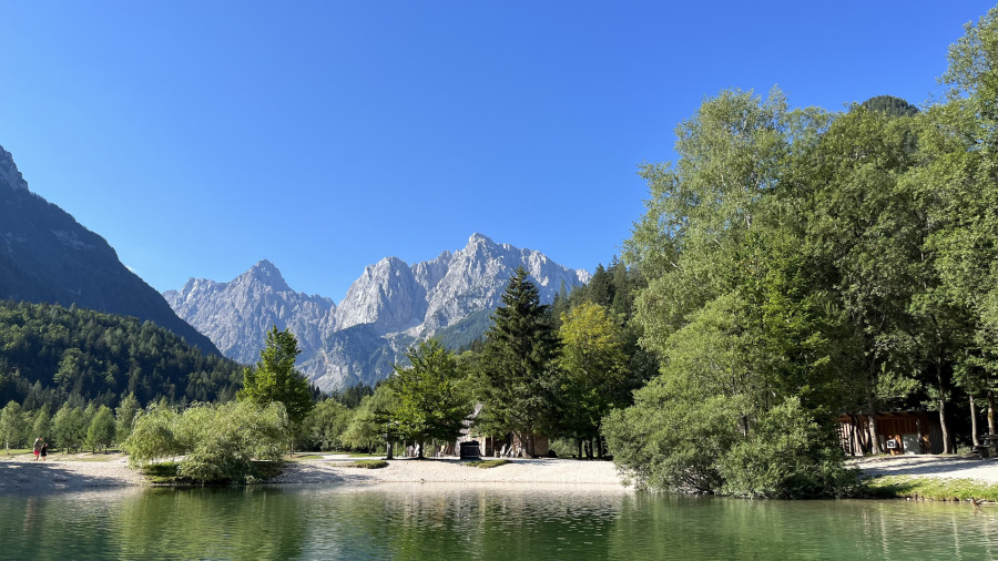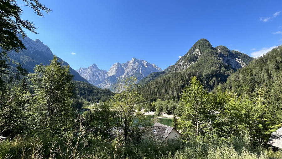 Današnjo nedeljo sva se odločila preživeti nekoliko drugače. Izbrala sva 19 km pešpot iz Kranjske Gore, ki je le ena od večih tras imenovanih Julian Alps Trail Run. Malce sva si jo vseeno prilagodila, sicer pa večji del sledila GPX oznakam na telefonu. Hoditi sva začela na velikem brezplačnem parkirišču v Kranjski Gori in jo že zjutraj mahnila do jezera Jasna, kjer sva si privoščila zajtrk ob jezeru z veličastnim razgledom. Nato sva sledila poti skozi lepo makadasko cesto po gozdu v senci. Pot je zelo lepa in dinamična, a niti slučajno nič zahtevnega. V Martuljku sva en del poti prehodila ob kolesarski stezi in si kavico privoščila v prelepem hotelu Triangel z veličastnim razgledom na Špikovo skupino. Pot nato vodi do kampa Špik ter navpično po gozdni poti do Srednjega Vrha. En del poti je nato malce bolj ozek, a prijetno hladen. Srednji Vrh je za naju najlepša vas v Sloveniji, zato sva posedela na travniku ob najlepšem razgledu na svetu v čisti tišini. Sledi samo še prekrasna pot nazaj do Kranjske Gore skozi gozd ob hladnem potoku. Nadaljevala sva še na pravo planinsko kosilo do Kosobrina. Odličen dan in še bolj odlična pohodniška tura. Razen v Martuljku in v Kranjski Gori praktično nisva srečala pohodnikov. Vseh skupaj bi lahko naštela na prste dveh rok. Več kot tri četrtine poti poteka v senci po gozdu, zato je res primerna tudi v poletni vročini. Prekrasen dan!
