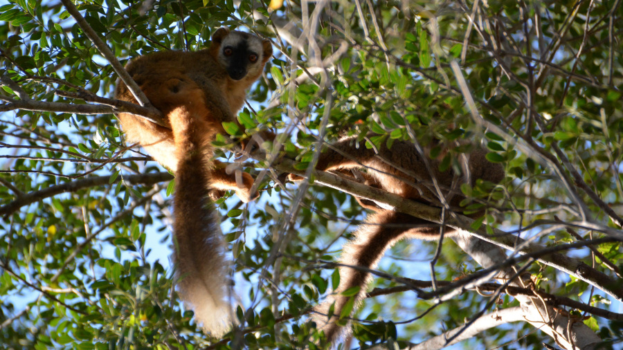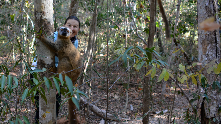 V rezervat Kirindy lahko greste na dnevno ali nočno turo. Midva sva sicer hotela na obe, a sva bila prejšnji dan preveč utrujena za oglede. Tako sva si izbrala samo jutranjo turo in bila presrečna, saj sva videla res ogromno živali v divjini. Nisva praktično pričakovala prav nič, sploh ko sva videla kako ogromen je rezervat in bilo je sredi zime, ko živali hibernirajo. A naju je vodič potolažil, da za ogled lemurjev je to super čas in da bomo zagotovo videli kakšno skupino. Na voljo smo imeli le dve uri. Hodili smo po gozdu in iskali živali. Vodič nama je pokazal tudi posebno vrsto baobaba, ki ima tudi sadeže. Sicer pa smo zelo hitro videli že prvega lemurja, nato pa še veliko različnih skupin. Vse skupaj smo videli vsaj 30 lemurjev in sicer tri različne vrste (Common Brown Lemur, Red-Bellied Lemur in enega nočnega vrste Weasel Sportive Lemur). Lemurji živijo samo na Madagaskarju in poznajo kar 100 različnih vrst. Ločijo jih na nočne in dnevne lemurje. Skupine so bile visoko v krošnjah dreves na jutranjem soncu. So se nama pa tudi približali tako zelo, da sem se že kar odmaknila. Vodič nama je pojasnil, da so zelo žejni in so za vodo pripravljeni tvegati življenje. Med hojo smo videli tudi ogromne luknje, v katerih so hibernirale kače. Videli smo lepo mangusto in prekrasnega modrega ptiča. Za konec pa še neverjetno lepo sovico, ki se sploh ni premikala. Ob izhodu sva bila popolnoma navdušena nad videnim. In šele kasneje sva se zavedala, kakšno srečo sva imela z videnim, saj le-to ni tako lahko. Na izhodu nas je pričakal še grozljiv roj uničevalskih kobilic, ki so 5 cm velike. Uff, kar tema se je naredila. Pobegnili smo v avto in se odpeljali proti severu.